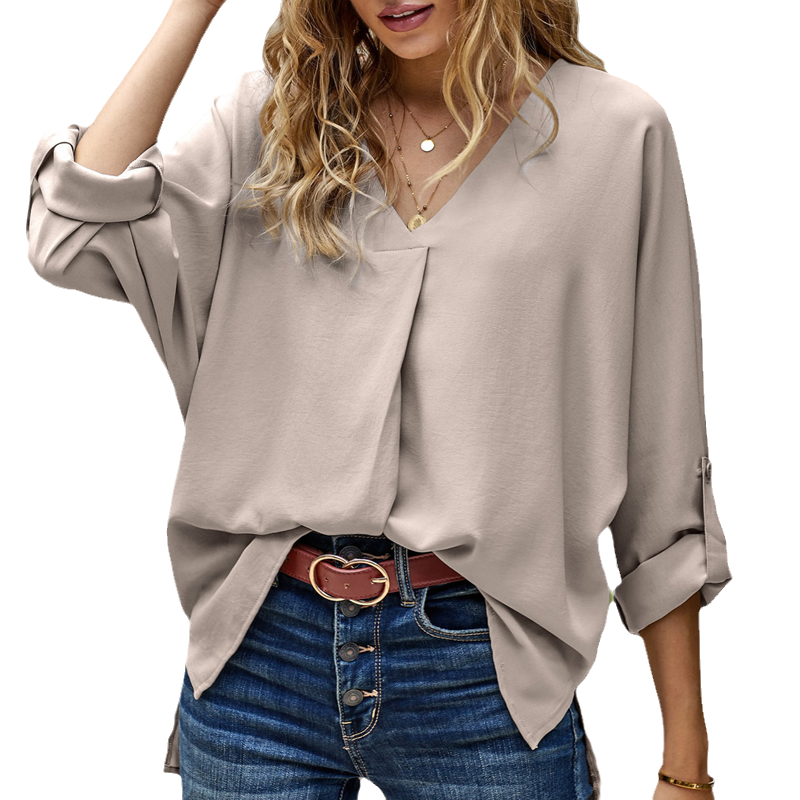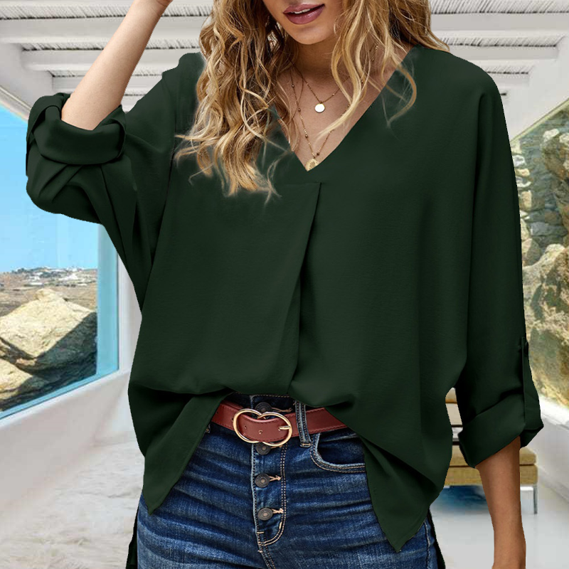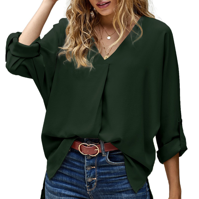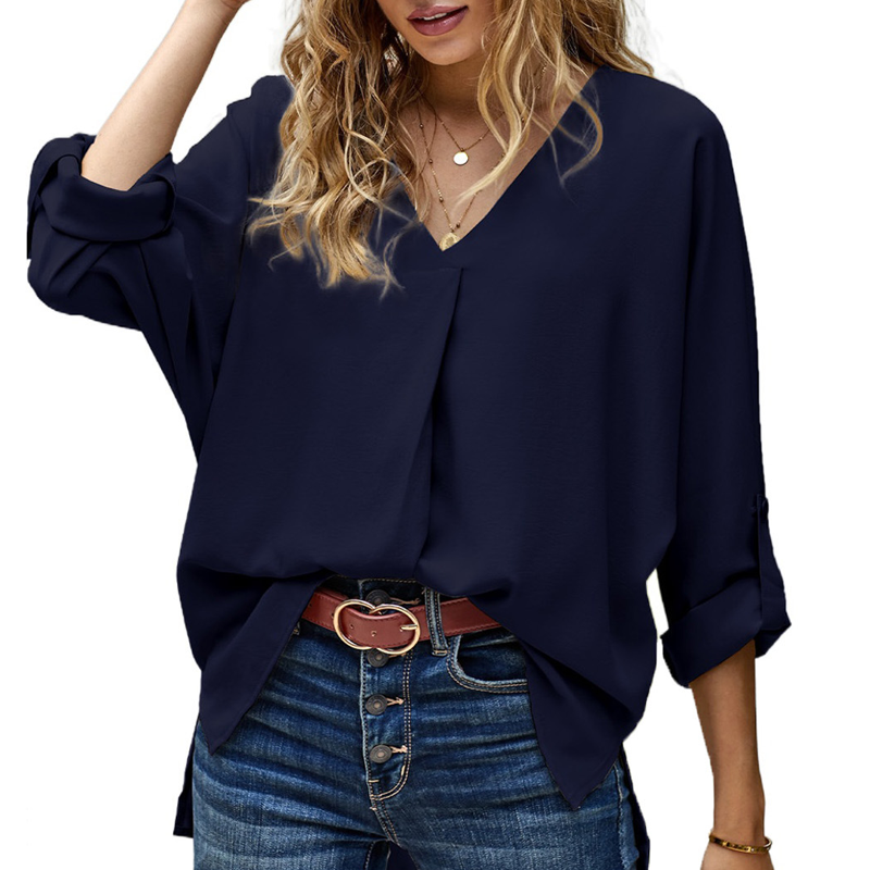 - 1 * Herbst-Chiffon-Bluse mit V-Ausschnitt