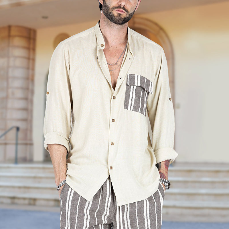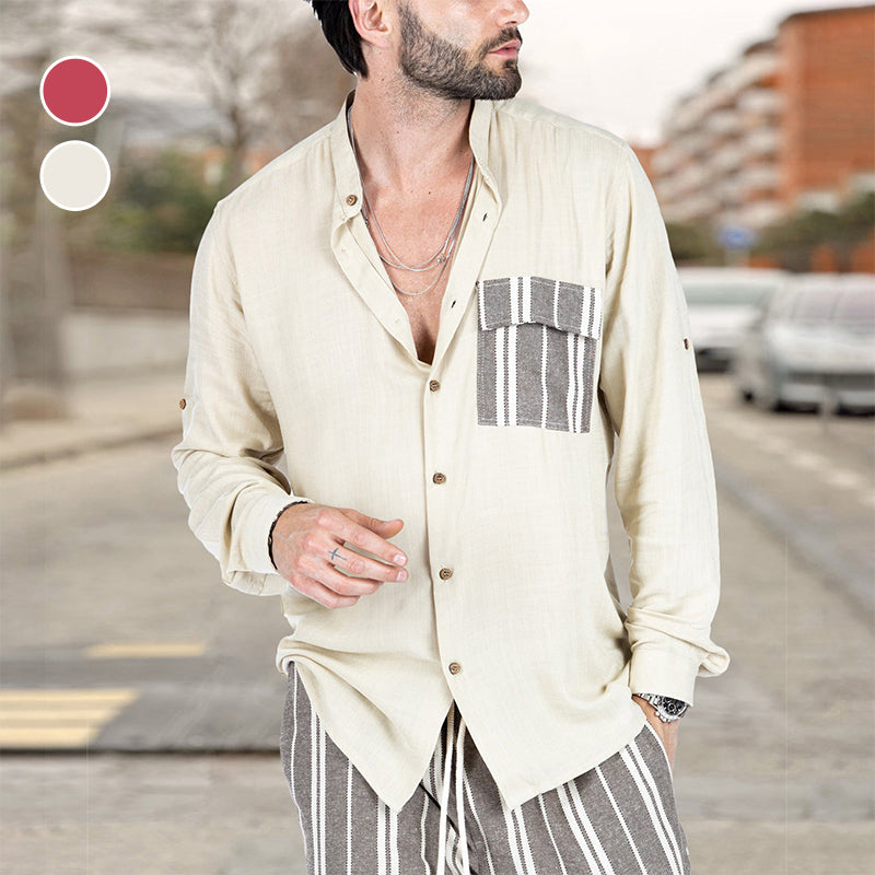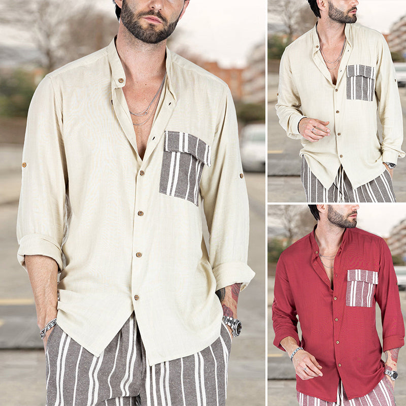 Einzigartiges Design: Klassisches Farbblock-Streifendesign und stilvoll aussehende Herrenhemden lassen Sie sauber und modisch aussehen. Der Leinen-Baumwollstoff ist sehr strukturiert. Ärmel tragen als 3/4 Ärmel oder Vollarm.