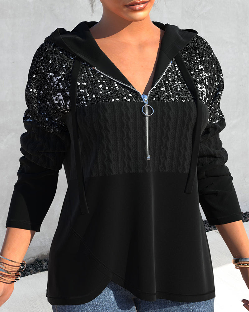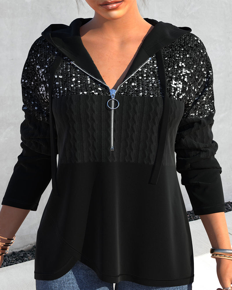 • Paket: 1 x Hoodie mit Reißverschluss und Pailletten