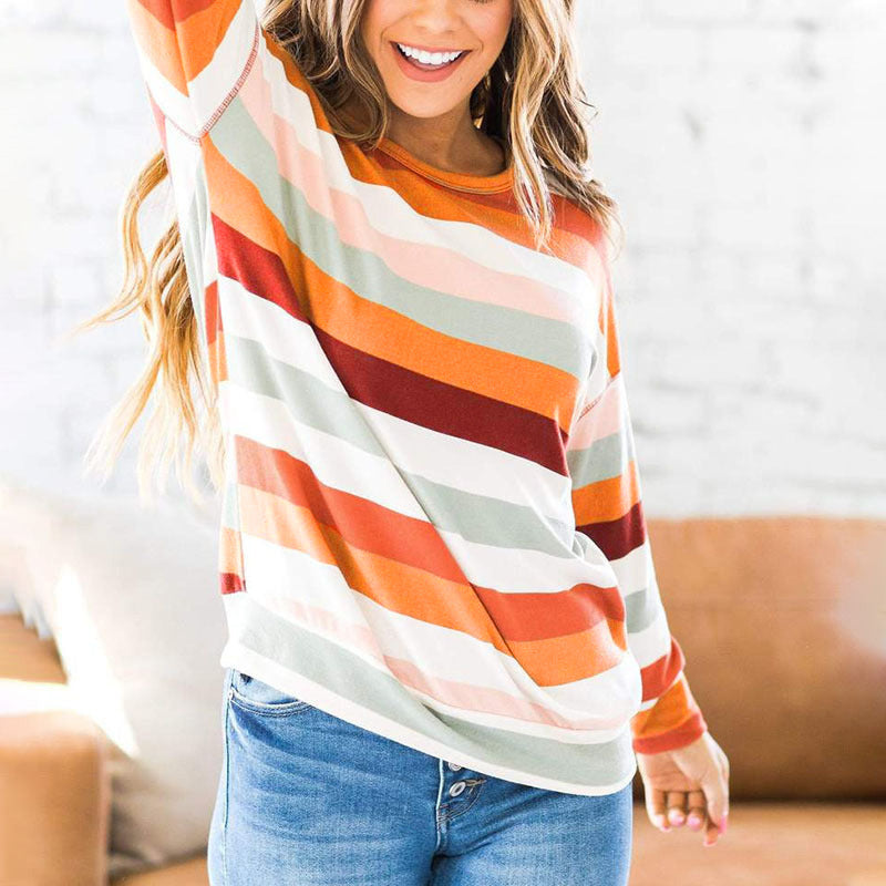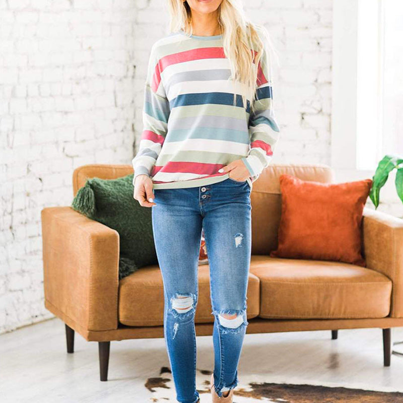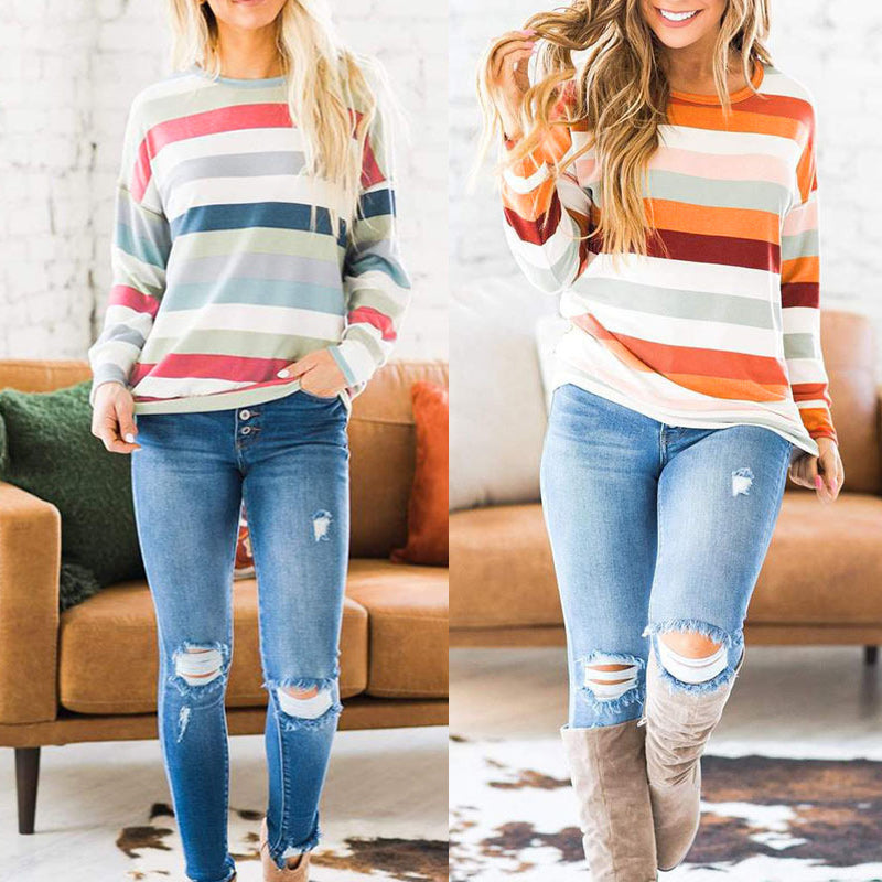 • Einfacher Stil: Herbstliches T-Shirt, lange Ärmel, Streifen, klassisch. Schlicht und lässig, schick und zeitlos ergänzt es jedes Outfit.