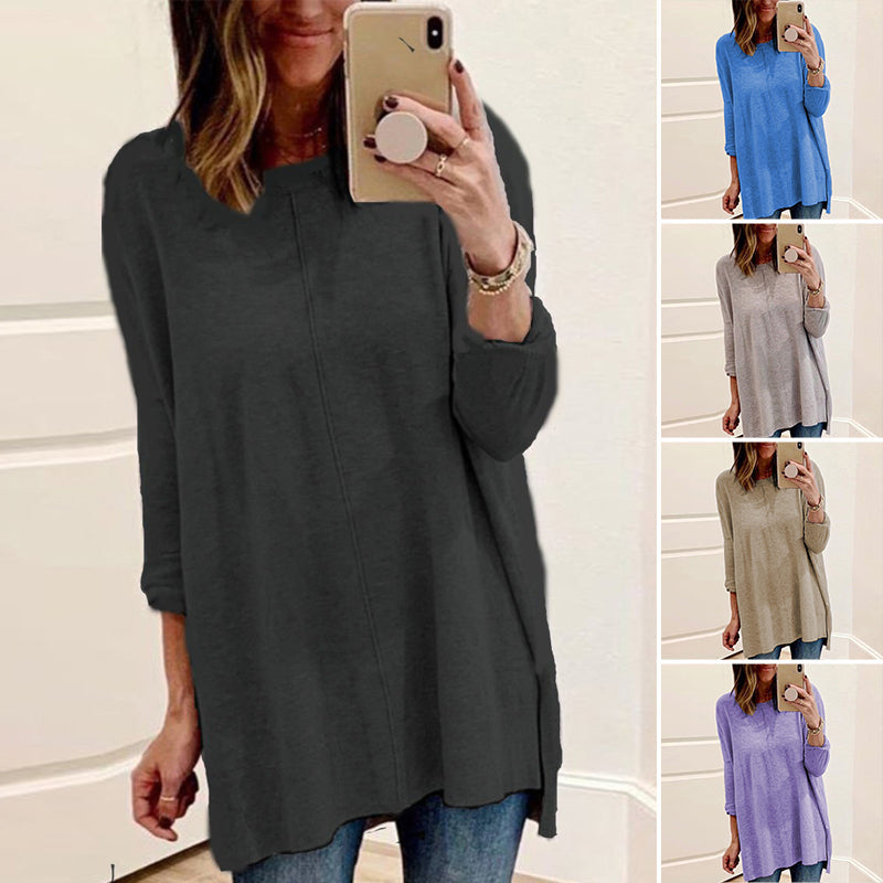 Eigenschaften: Rundhals-Tops für Damen, Langarm, lockere Passform, Arbeitsblusen für Damen im Büro, lässige Oberteile für Damen.