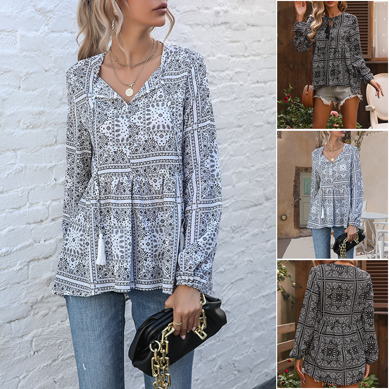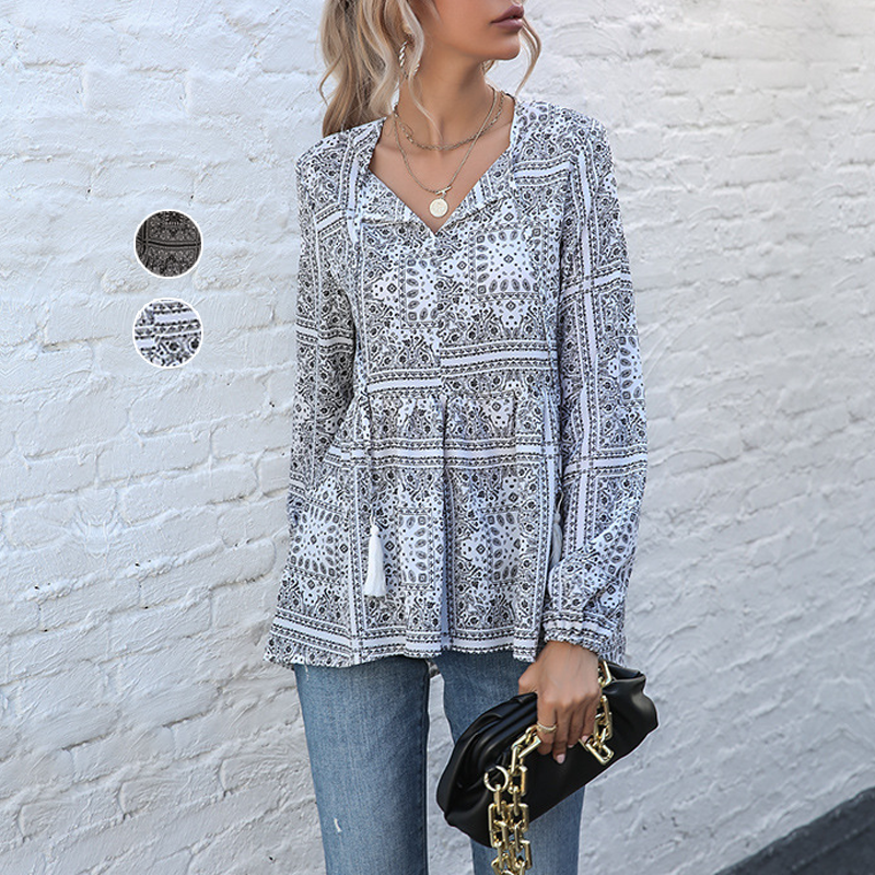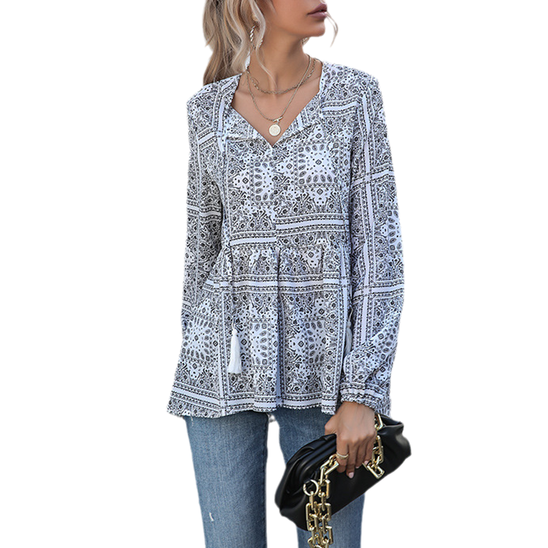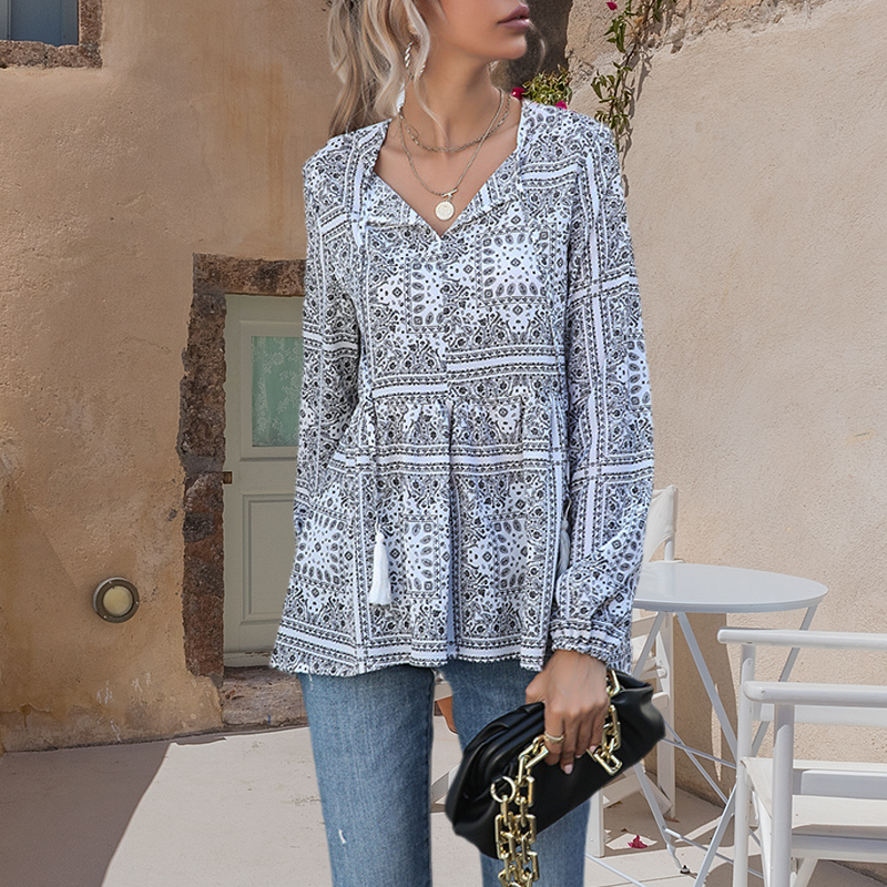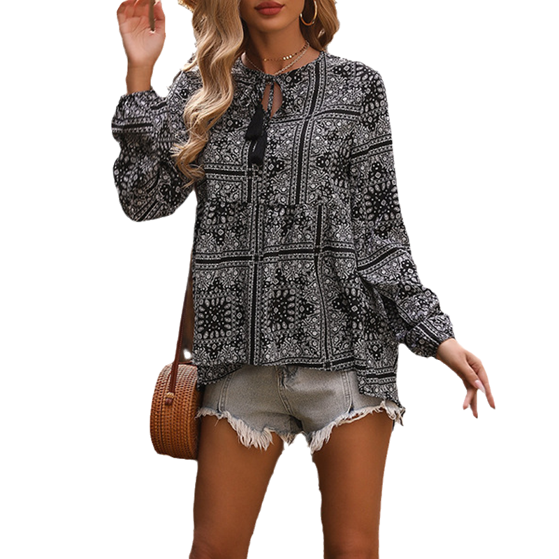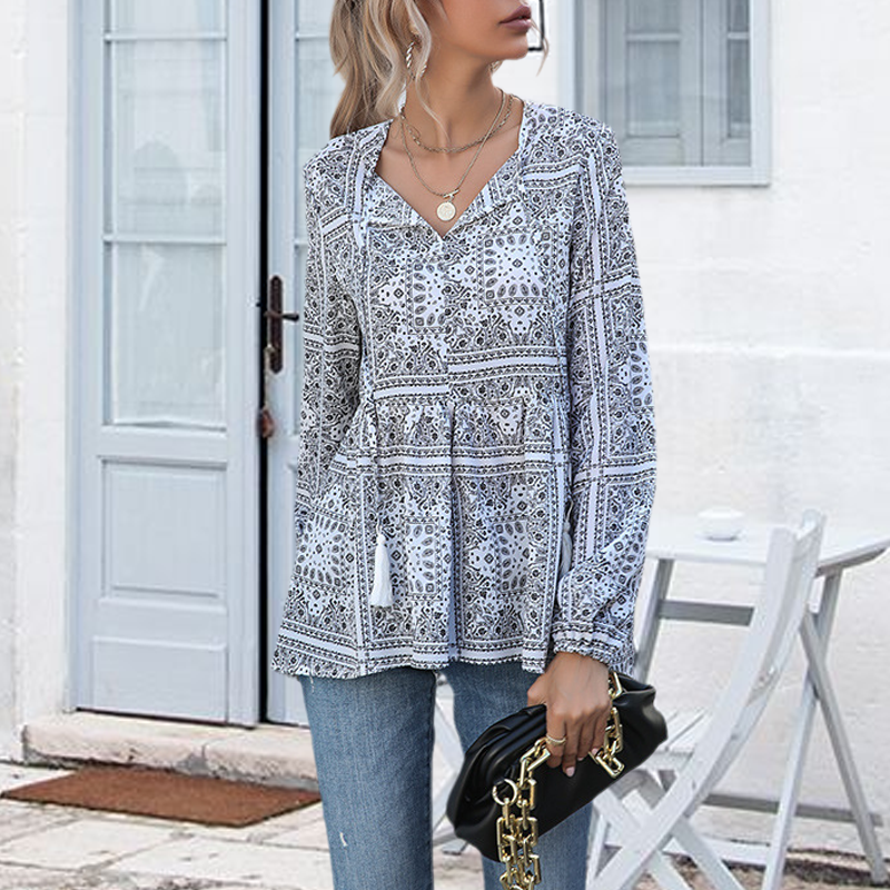 Passend: Diese locker sitzende Bluse ist perfekt für Herbst und Winter und lässt sich leicht mit Jeans, Shorts und engen Leggings für einen stilvollen Look kombinieren.