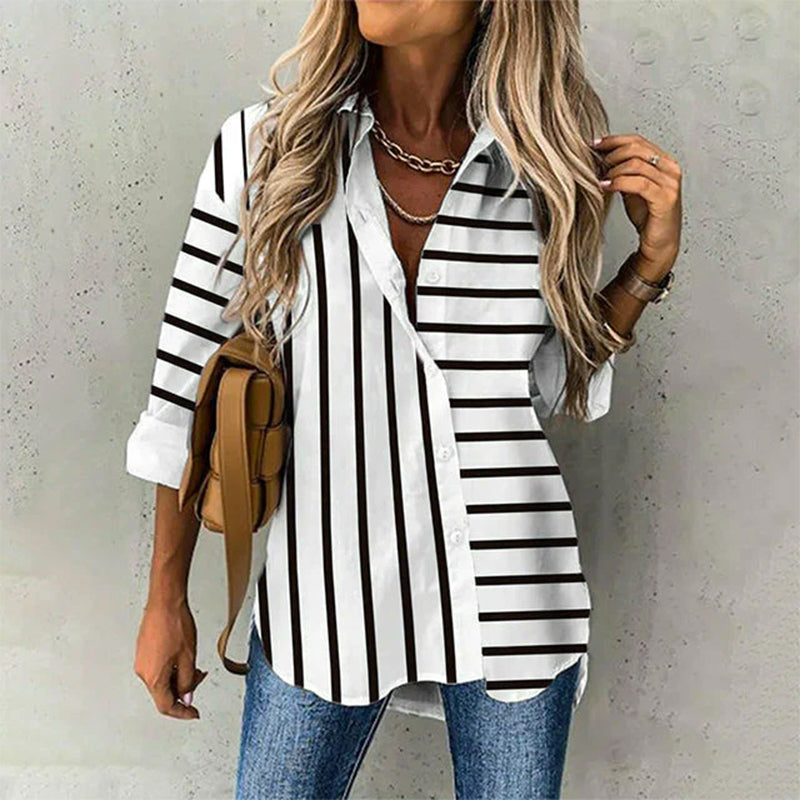 - 1 * Lässige Einfache Gestreifte Bluse