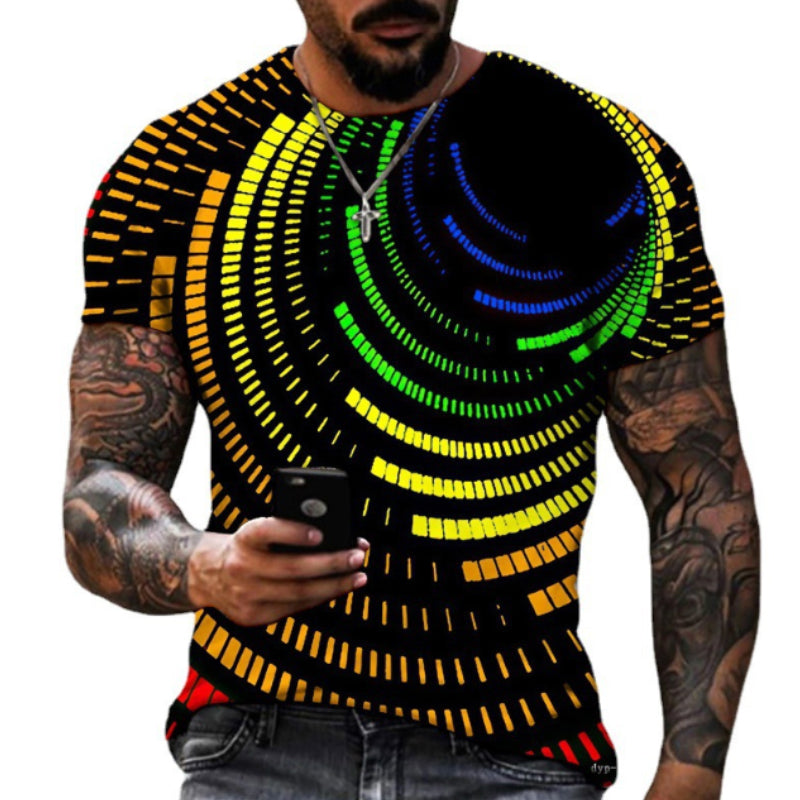 • 3D bedrucktes T-Shirt: T-Shirt mit Rundhalsausschnitt, kurze Ärmel, ganzflächiger 3D-Schwindel-Digitaldruck mit Farbsublimation, eine Technologie, die 3D-T-Shirts wahnsinnig lebendig und lebensecht ermöglicht.