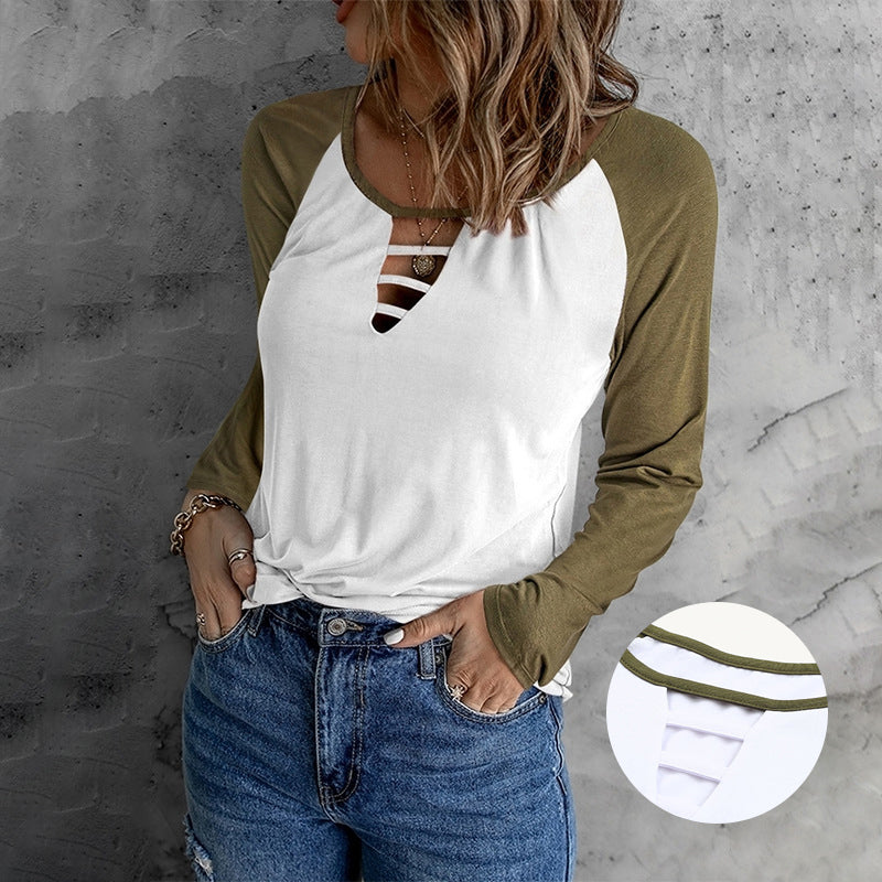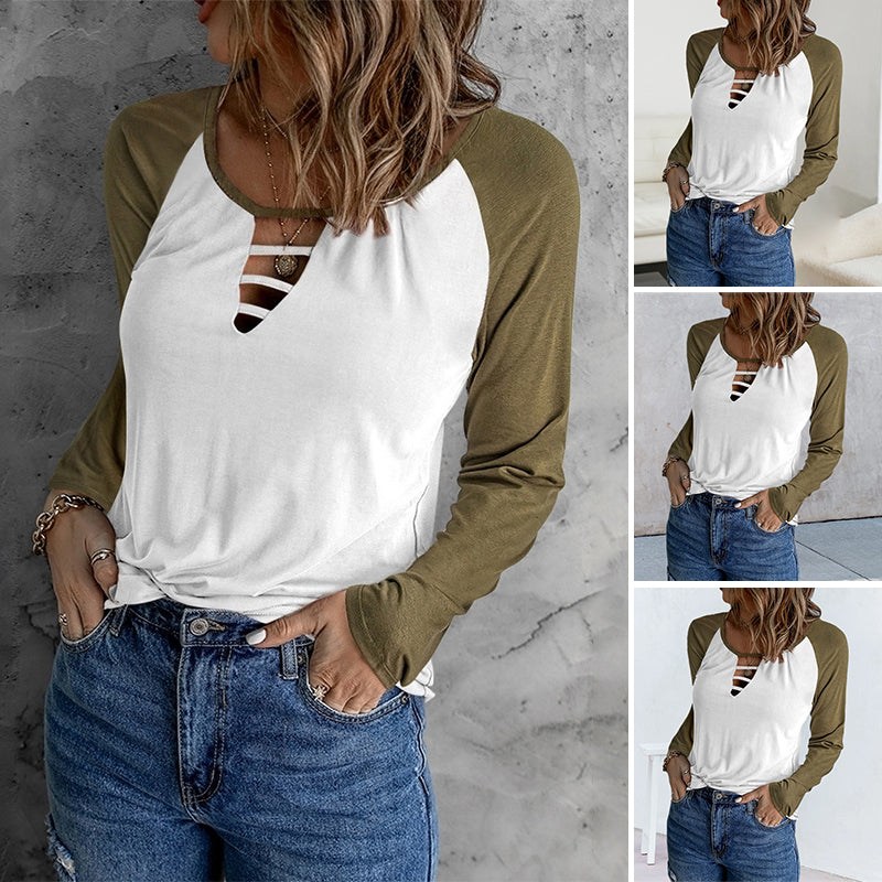 - Paket: 1* Lässiges T-Shirt mit langen Ärmeln und Farbblock