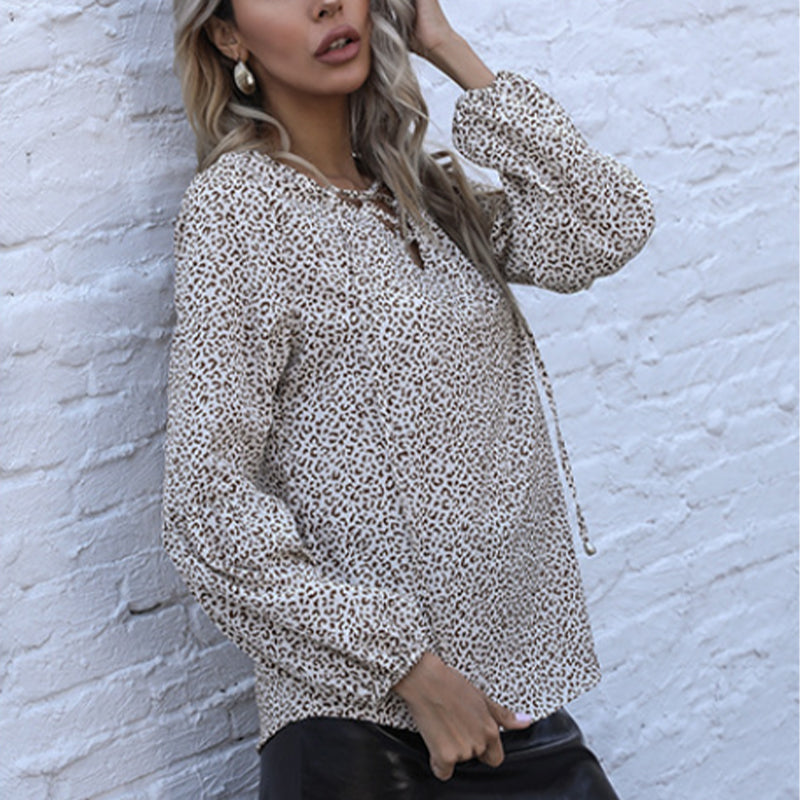 - 1 * Lockere Bluse mit Leopardenmuster und V-Ausschnitt