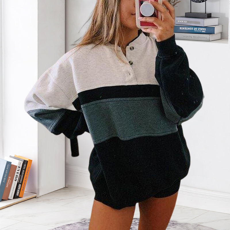 Höhepunkte: Klassisches Stehkragen-Sweatshirt, um Ihr schönes Schlüsselbein zu zeigen. Dieses Sweatshirt hat einen stylischen Stehkragen oder einen 1/4-Knopfverschluss für einfaches An- und Ausziehen.