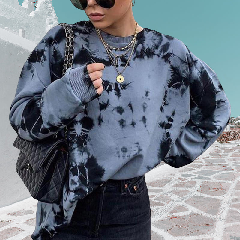 - 1 * Loses Sweatshirt mit rundem Halsausschnitt für Damen im Tie-Dye-Stil