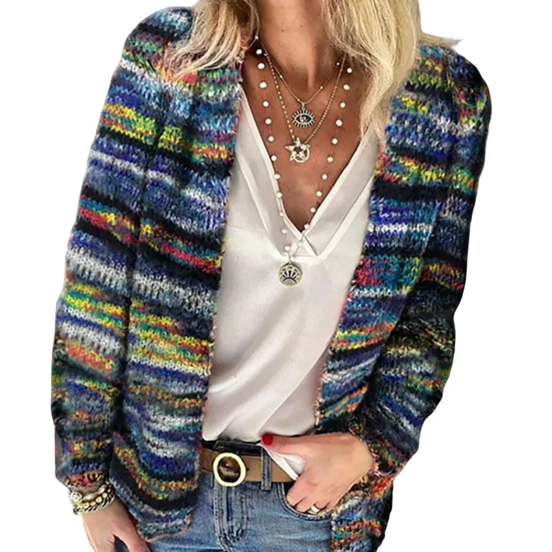 Paket: 1 * Mehrfarbig Gestreifte Strickjacke
