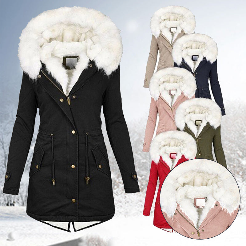 • Paket: Mittellanger Warmer Fleecemantel mit Kapuze für Damen * 1