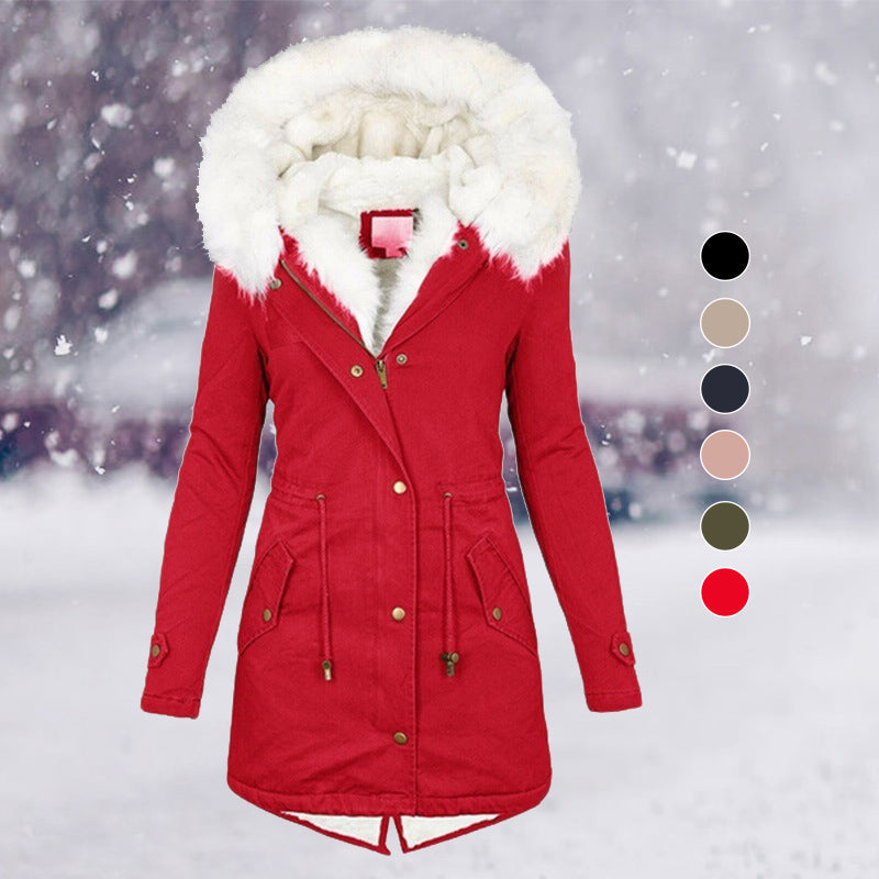 Mittellanger Warmer Fleecemantel mit Kapuze für Damen
