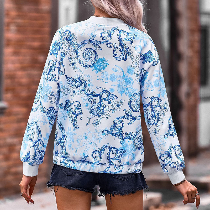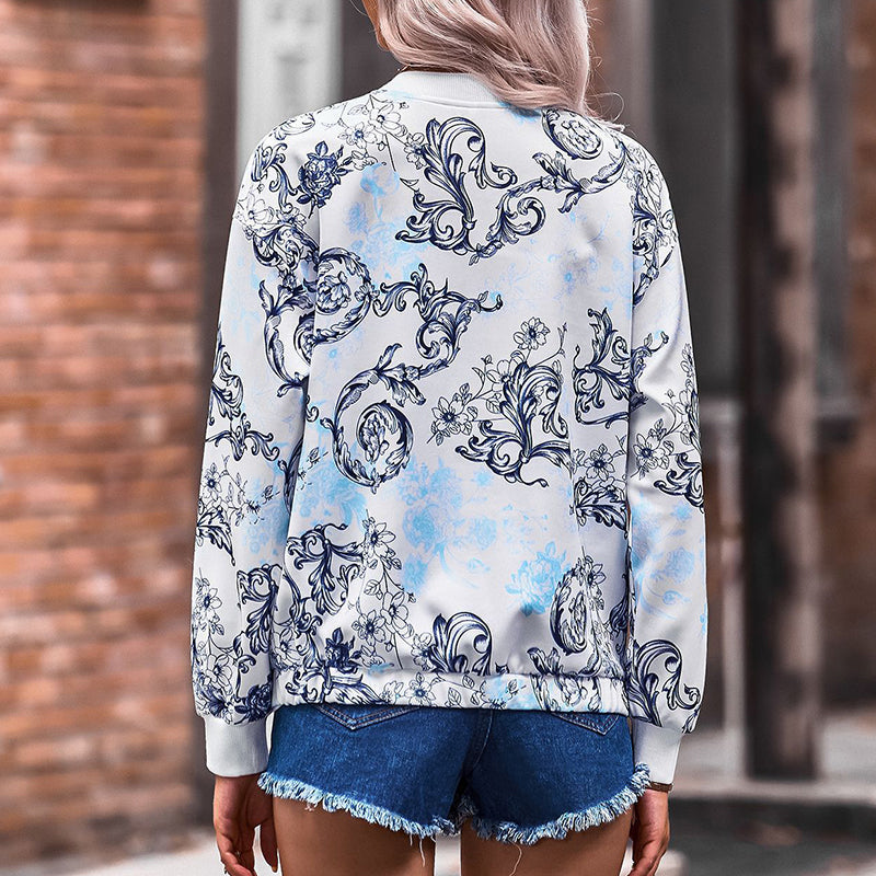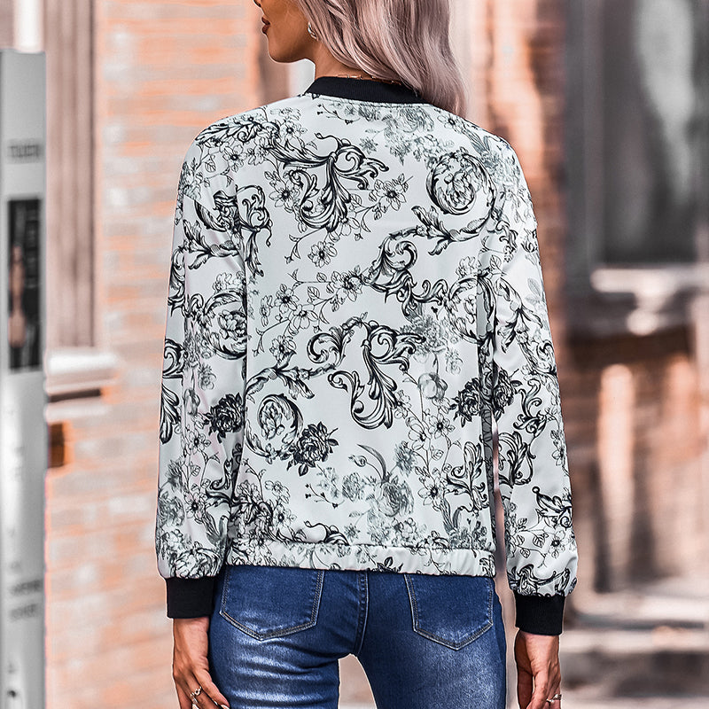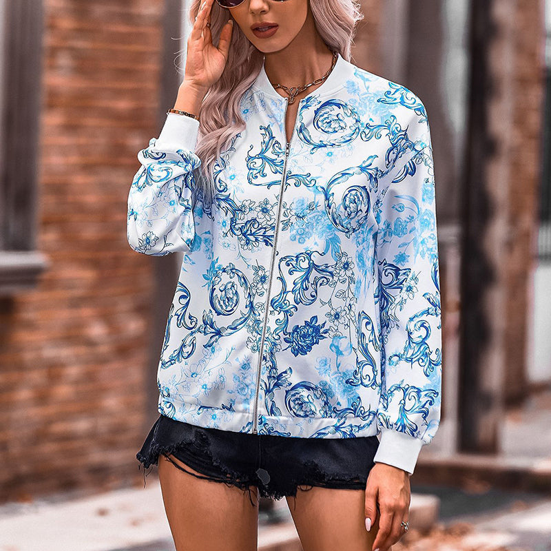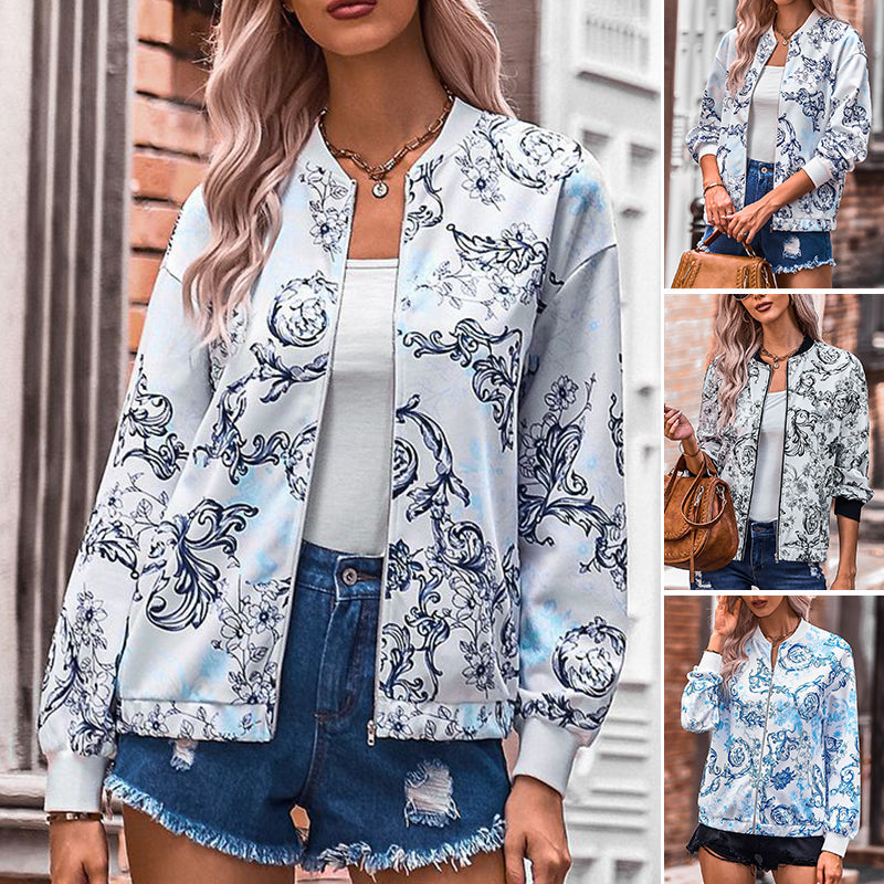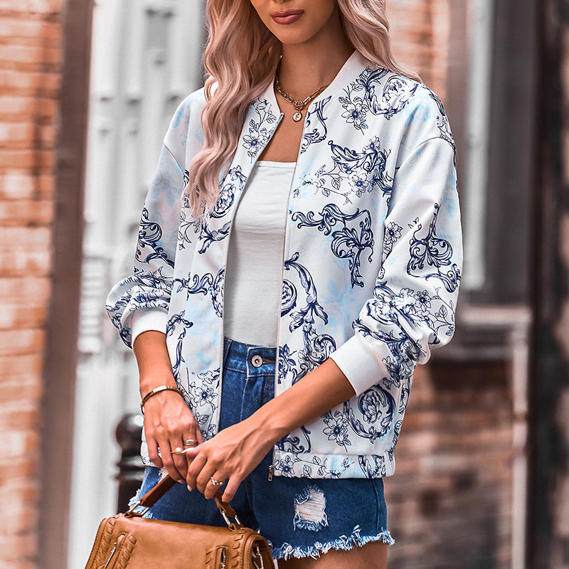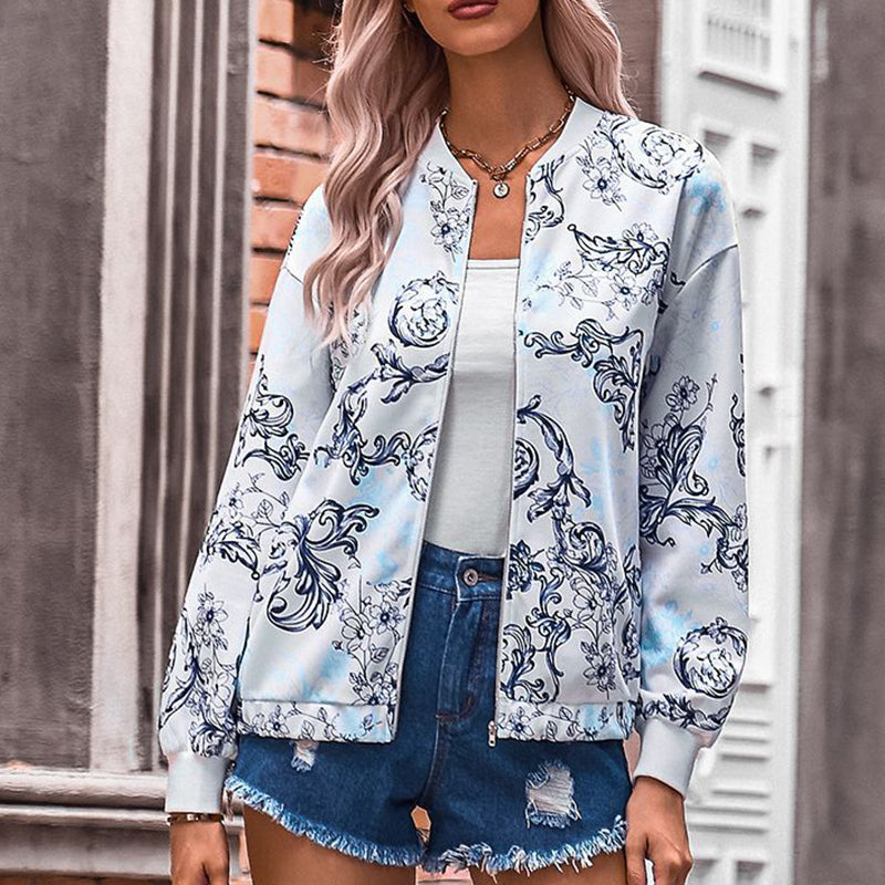 Design: Bedruckte Jacke für Frauen, beliebtes Druckdesign, lange Ärmel, mit hervorragender Handwerkskunst gefertigt, perfekter Mantel im College-Stil.