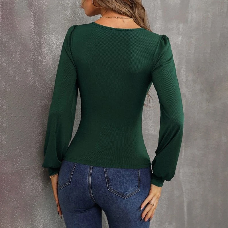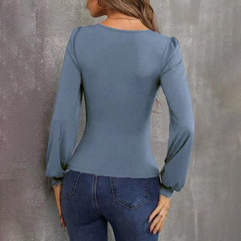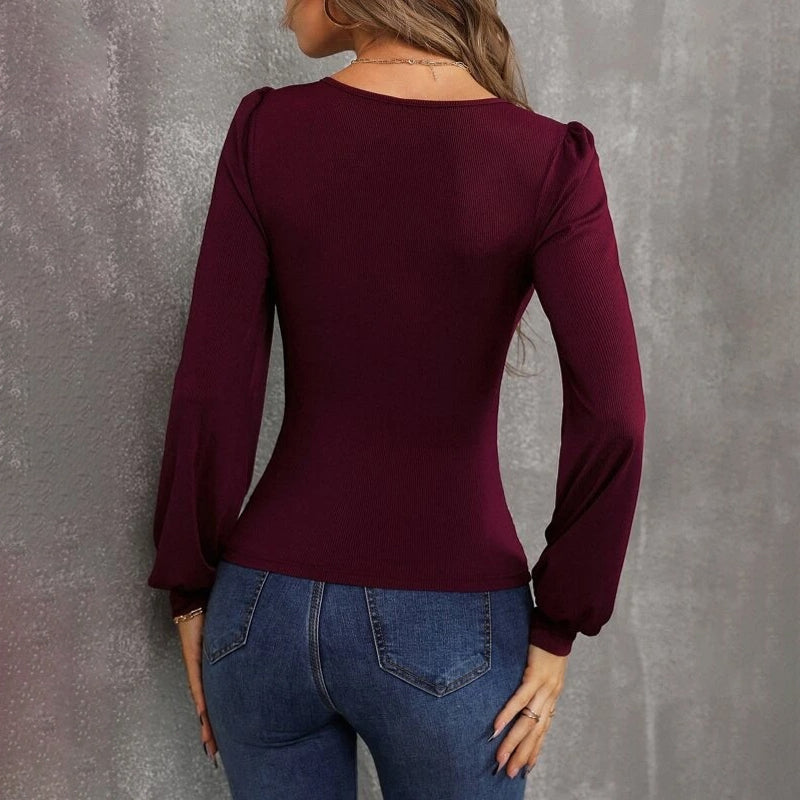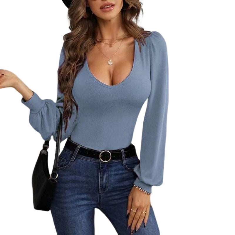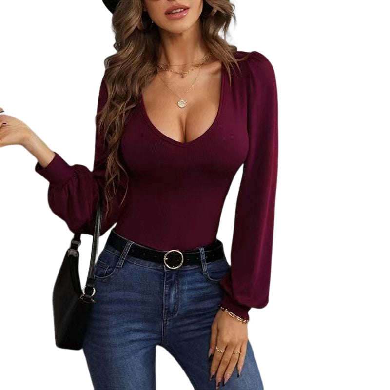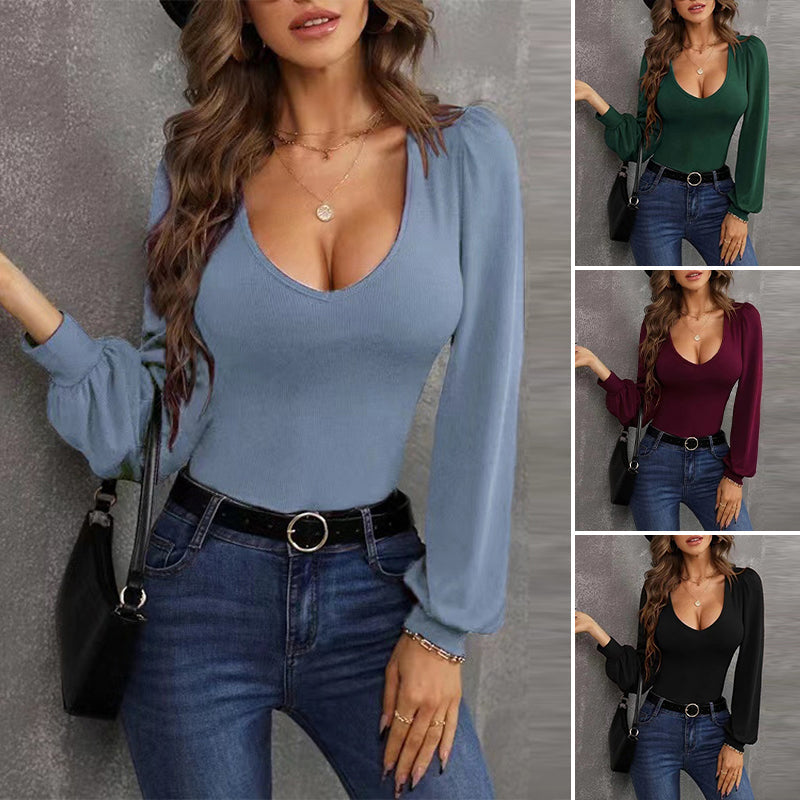 Stil: Dieses sexy Outing-Oberteil verfügt über lange Ballonärmel, einen sexy U-Ausschnitt, einfache Volltonfarben und eine schlanke, schmale Passform.