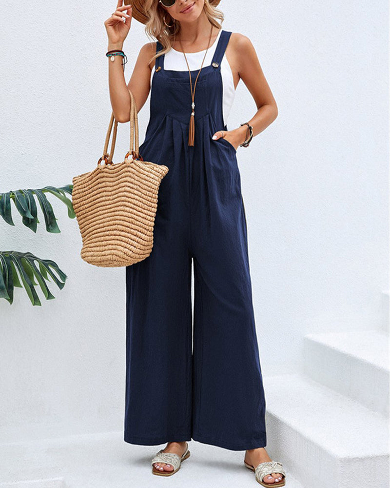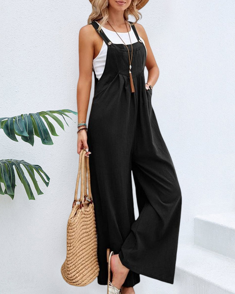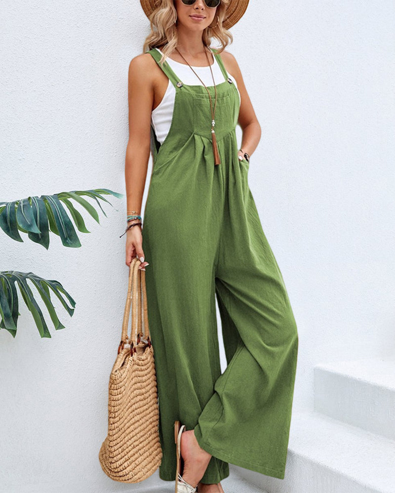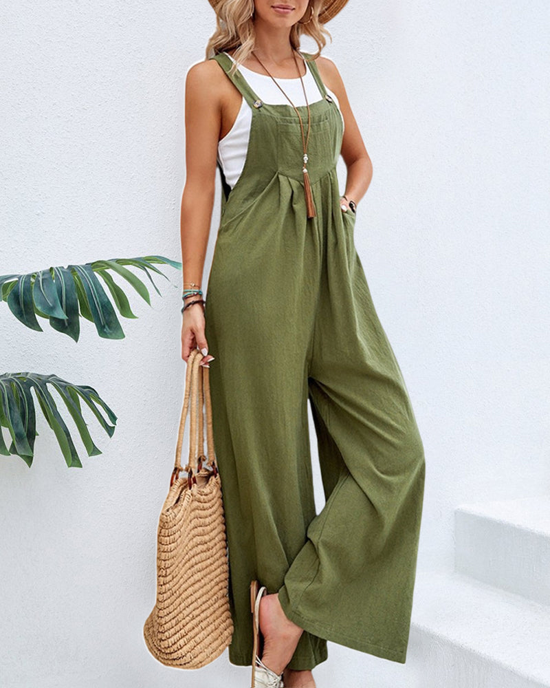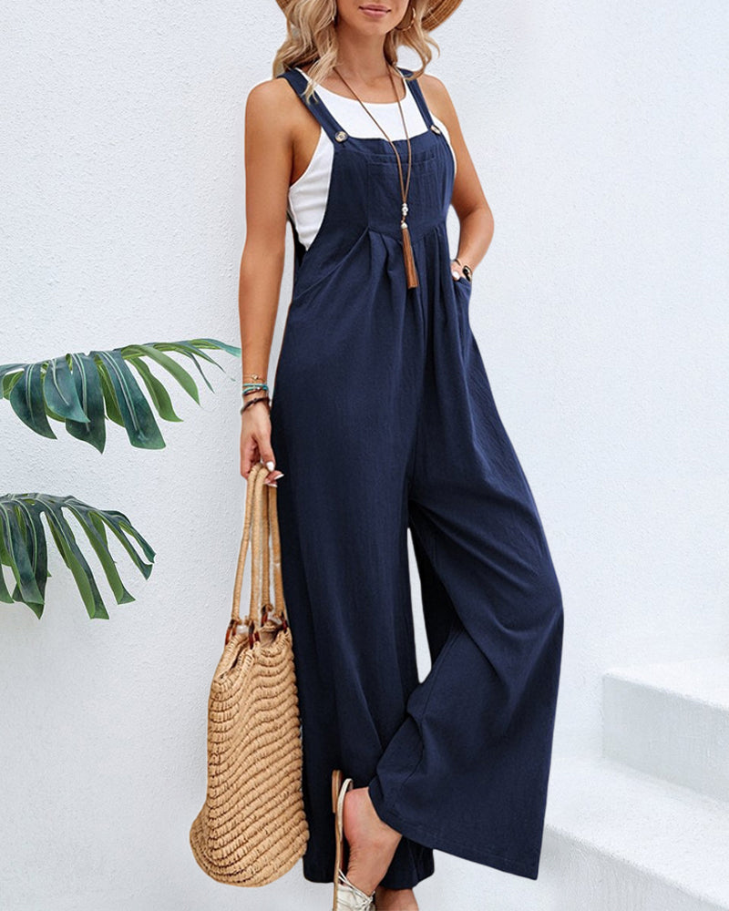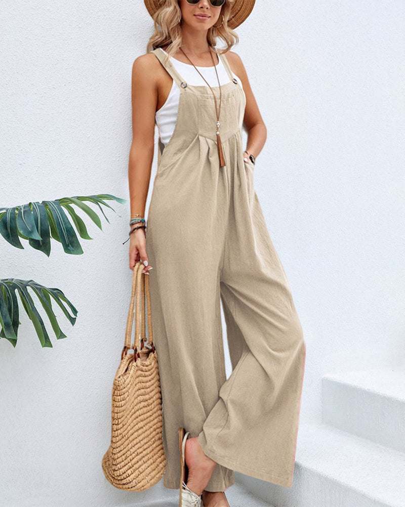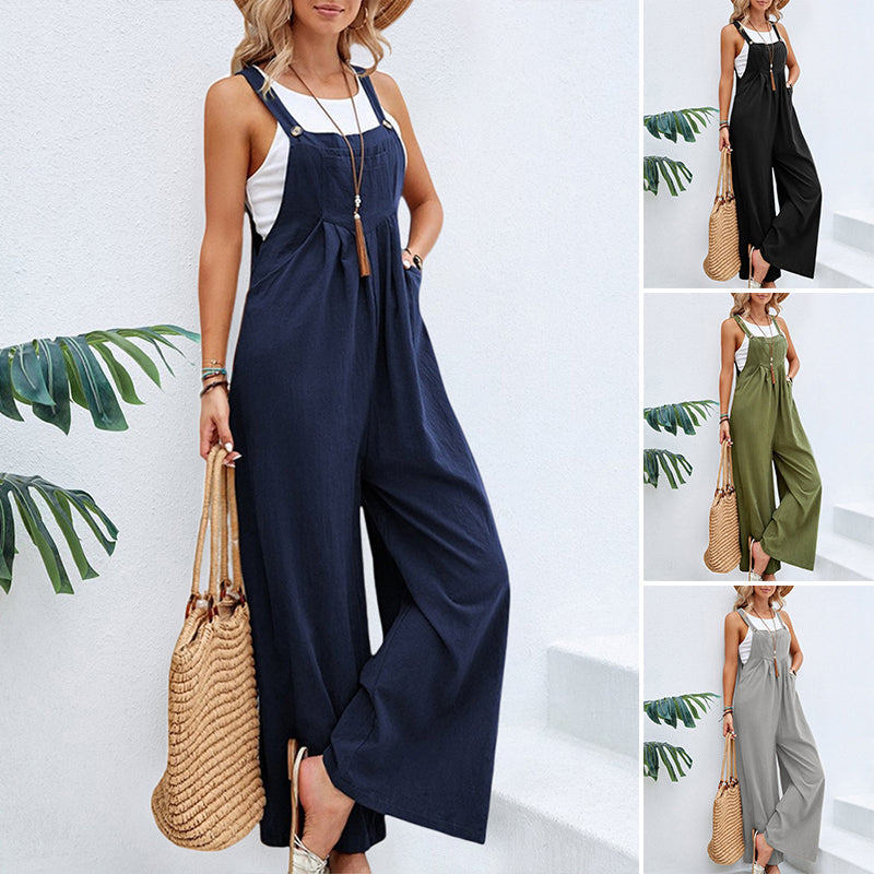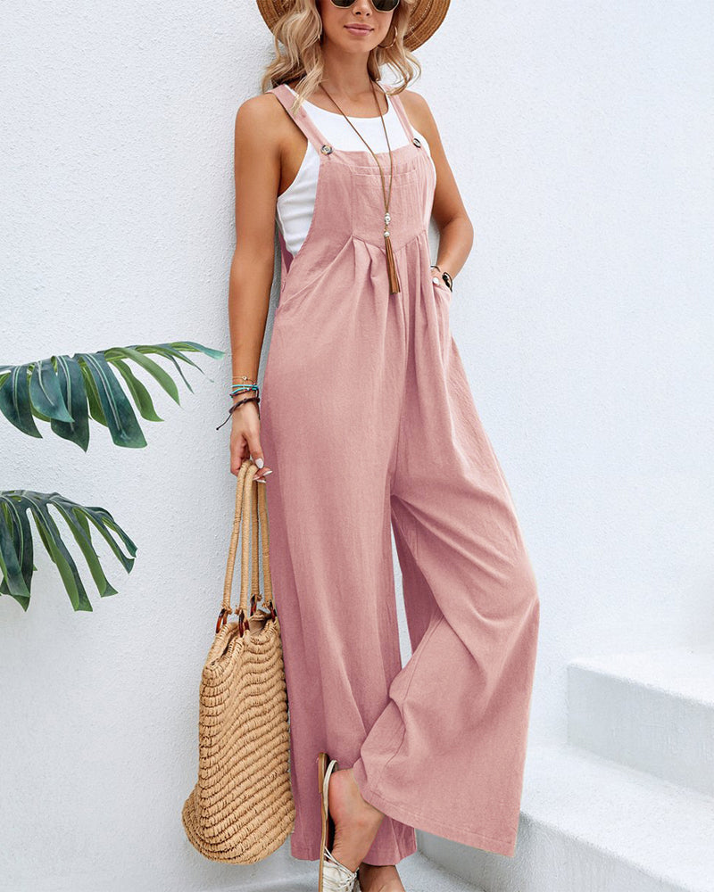 Quadratischer Ausschnitt und Rücken, einfarbige Hose mit weitem Bein, verstellbare Schultergurte, ein Latz, zwei Seitentaschen, ein seitlicher Reißverschluss zum einfachen An- und Ausziehen, stilvolle, lässige, lockere Passform, sehr cool im heißen Sommer.