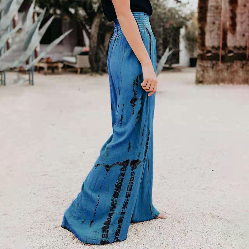 Elastische Strandhose mit hoher Taille und weitem Bein