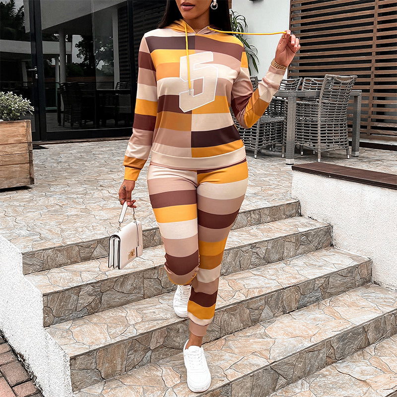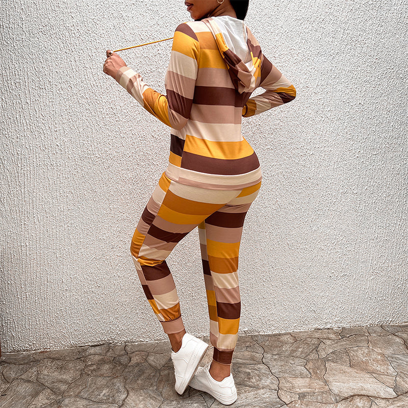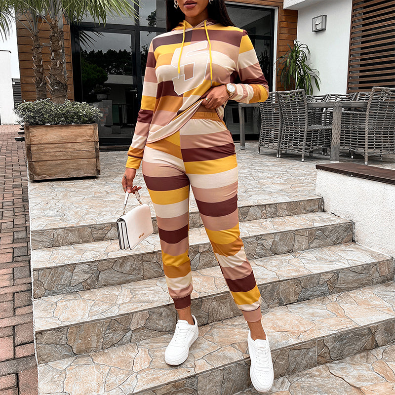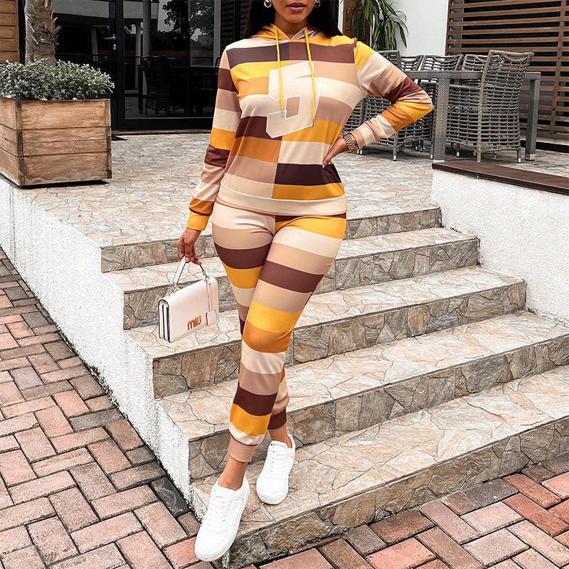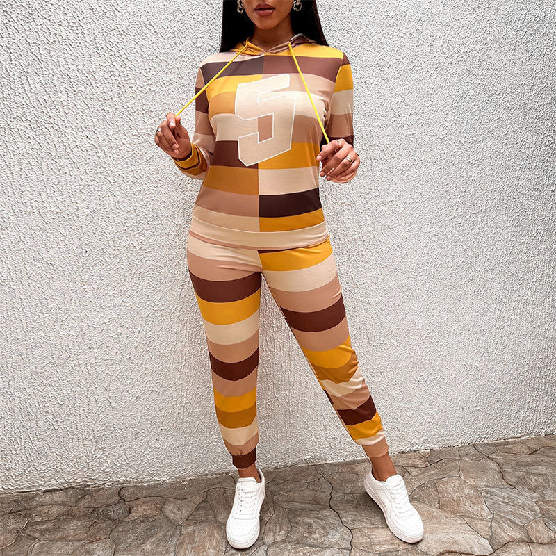 【Lässiges Design】 Damen-T-Shirt-Set mit langen Ärmeln und Kapuze. Lässige Hose mit elastischem Bund. Einfach, einfarbig, klassischer Stil.