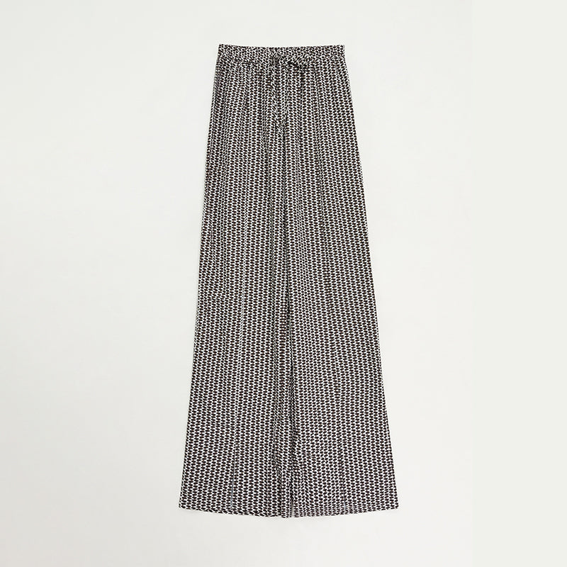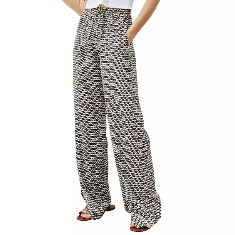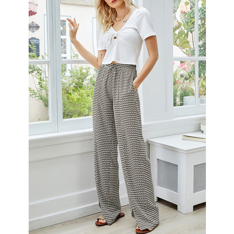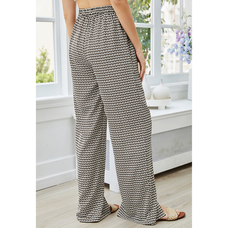 Gestreifter Druck, elastische Taille, hohe Taille, Hose mit ausgestelltem Bein und geschlitztem Saum.