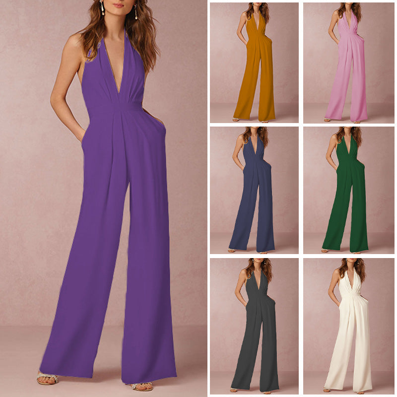 Design: Neckholder, ärmellos, zum Binden, hohe Taille, weites Bein, lockere Passform, atmungsaktiver, weicher Stoff, einfarbig, Overall für Damen und Mädchen.