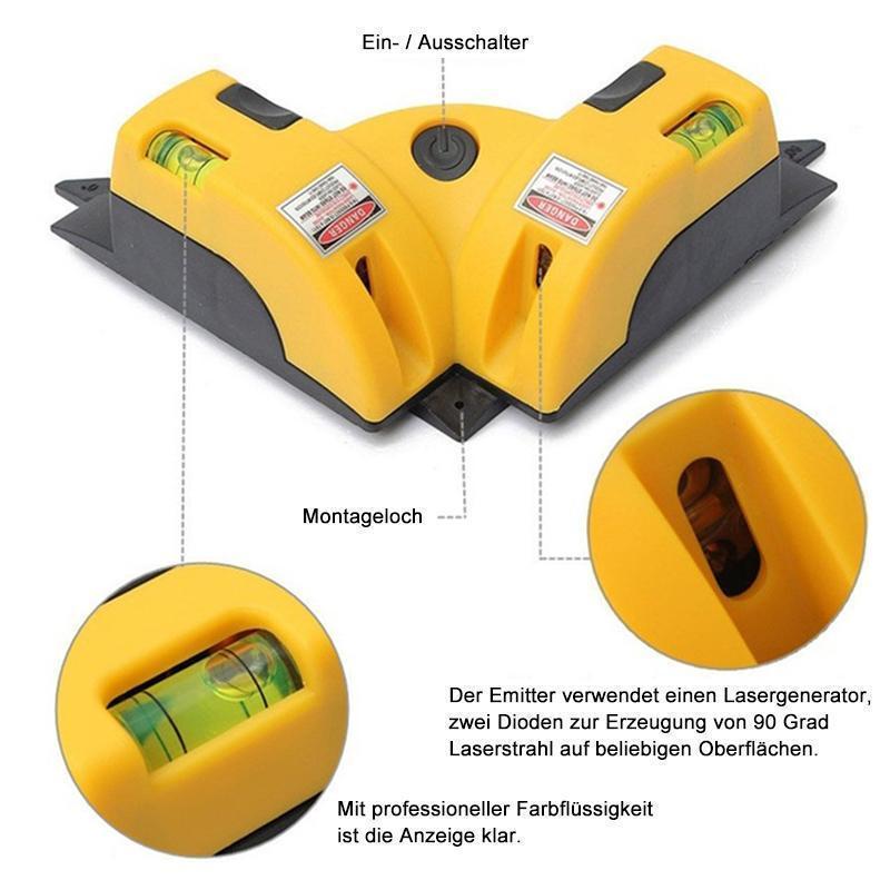 - Ein handliches und kompaktes Laser-Level-Tool, das zwei Linien auf dem Boden, der Wand oder einer anderen Oberfläche in einem Winkel von 90 Grad erzeugen kann, um Sie bei der Ausrichtung der Oberfläche, einschließlich Fliesen, Bild, Stein, Ziegel, Teppich, Hartholz, um 90 Grad zu winkeln Bodenbeläge und mehr.