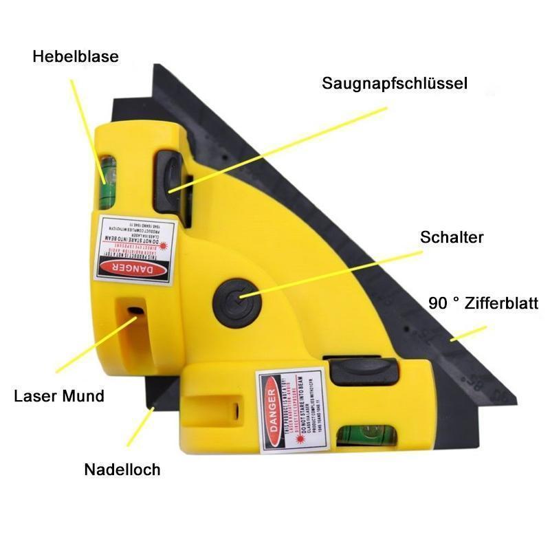 - Die einfache Ein-Knopf-Bedienung schaltet zwei senkrechte Linien (90 Grad) ein und aus, Laserprodukt der Klasse IIIa, max. Leistung: <5mW.