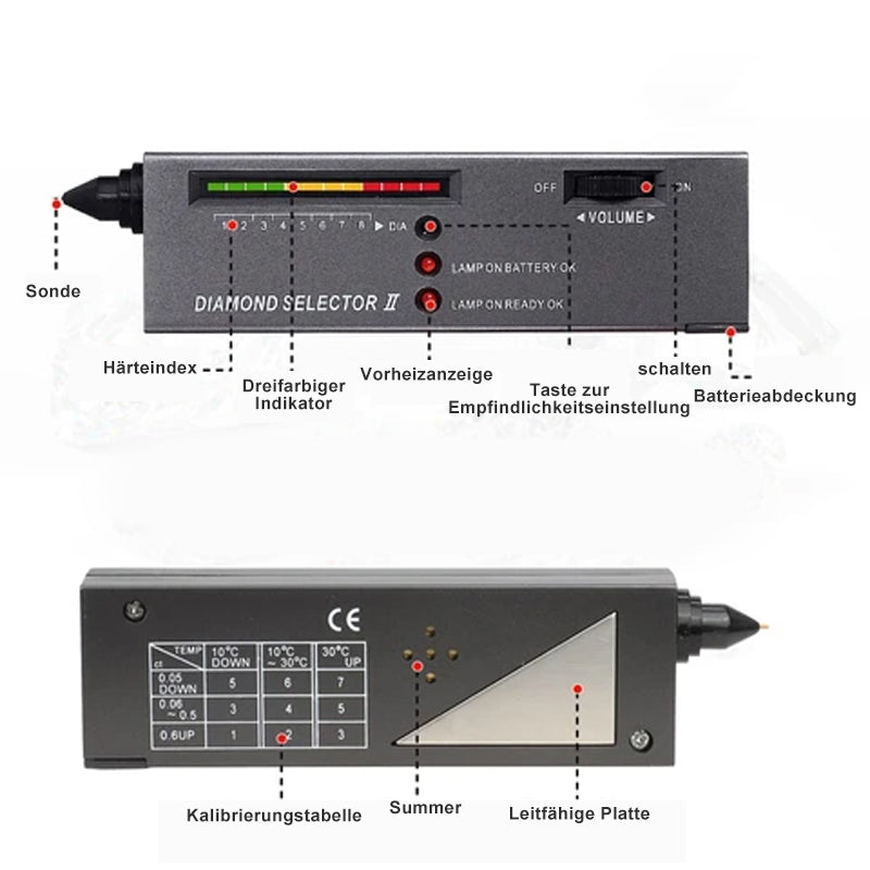 Einfach zu bedienen - Wenn der Diamant gefälscht ist, wird er nicht angezeigt und macht keinen Ton. Wenn es sich um einen echten Diamanten handelt, wird eine Leuchtanzeige angezeigt. Es ist sehr einfach zu bedienen.
