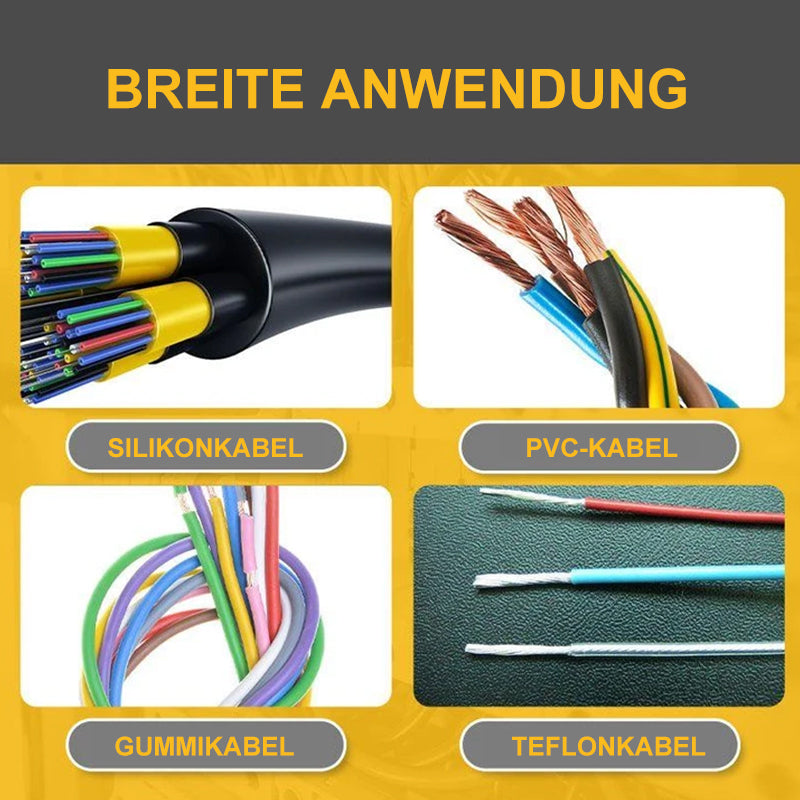 Geeignet zum Abisolieren von PVC-Rundkabeln, Gummikabeln, Silikonkabeln, Teflonkabeln und Koaxialkabeln usw. Zinnbeschichtete Messer haben eine längere Lebensdauer, schnelleres Schneiden und weniger Verschleiß.