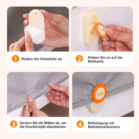 Unsere Bettdeckenklammern aus hochwertigem Kunststoff sind wiederverwendbar und langlebig. Die Rückseite hat eine Klebefolie, die einfach zu kleben ist. Diese Clips machen Ihr Zimmer sauber und ordentlich.