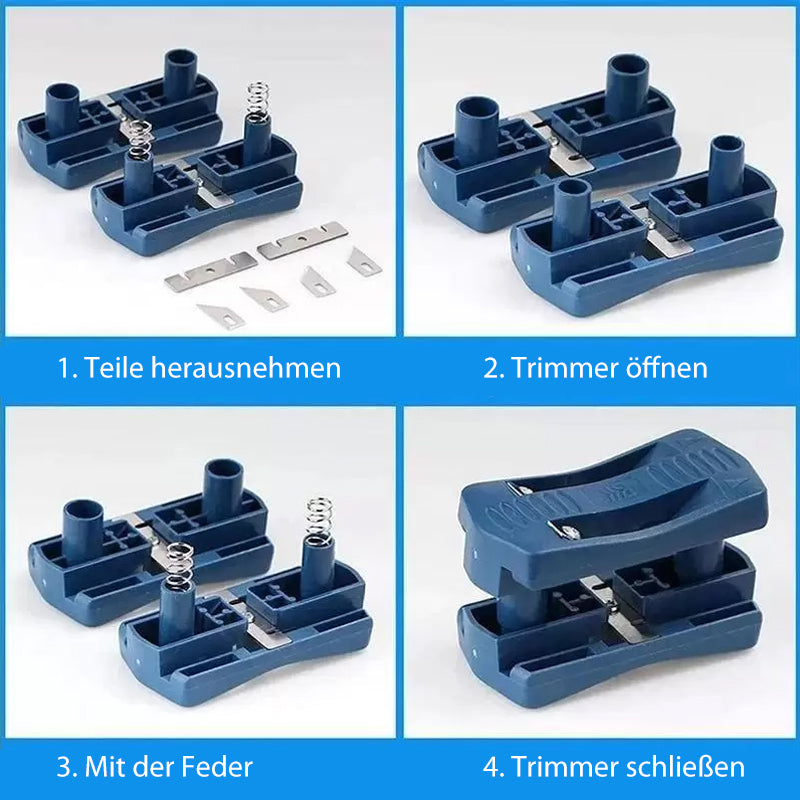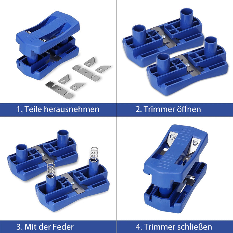 Der Kantenschneider ist aus hochwertigem PVC-Material gefertigt, solide und nicht leicht zu altern, die rutschfeste Oberfläche ist einfach zu bedienen und langlebig zu verwenden. Der Holzkantenschneider wird mit zwei Klingensätzen geliefert. Die Klinge besteht aus legiertem Stahl, ist hart und verschleißfest und kann lange verwendet werden.