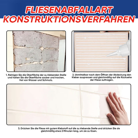 Einfach zu kleben und Fliesen Sekunden zu reparieren. Starke Haftung und einfach zu bedienen. Für alle Arten von Fliesen geeignet.