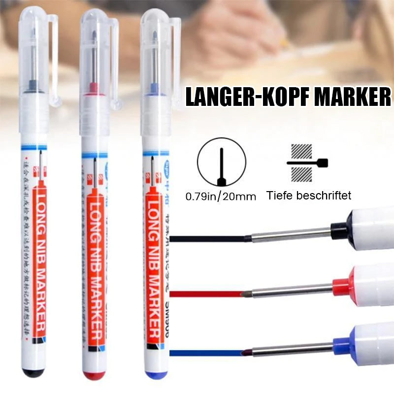 Der Tieflochmarker mit langer Spitze ist ideal für Bastel- und Heimwerkerprojekte und hat ein durchdachtes Design, das es dem Marker ermöglicht, fette Markierungen zu machen und schwierige Stellen zu erreichen.