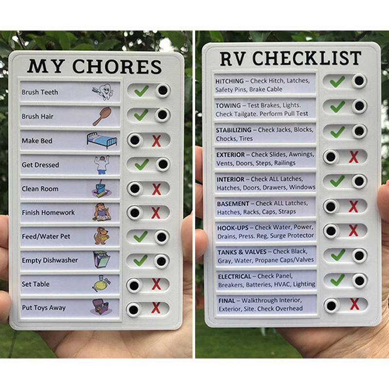 „MY CHORES“ ist eine anpassbare Liste, die Kinder bei der täglichen Hausarbeit mitnehmen können. Nachdem jede Hausarbeit erledigt ist, klickt der Schieberegler auf Fertig stellen und die Eltern können die Hausaufgabenliste jeden Tag zurücksetzen. Kein Stift oder Radiergummi erforderlich!