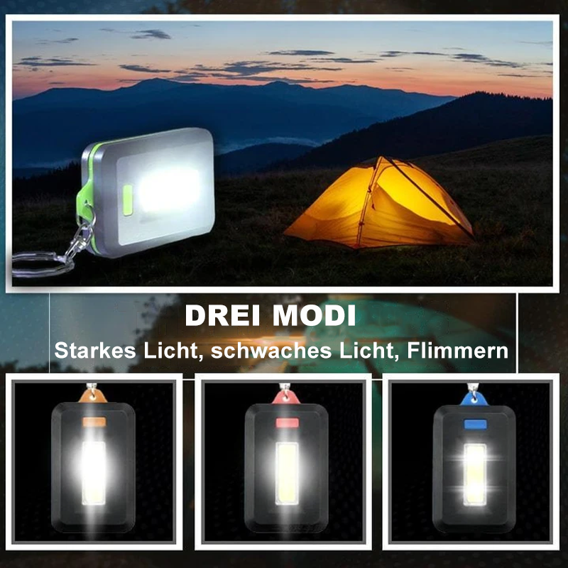 Unsere Schlüsselanhänger-Taschenlampe verfügt über 3 Beleuchtungsmodi, starkes Licht, schwaches Licht und Blinken. Genug für den täglichen Gebrauch.