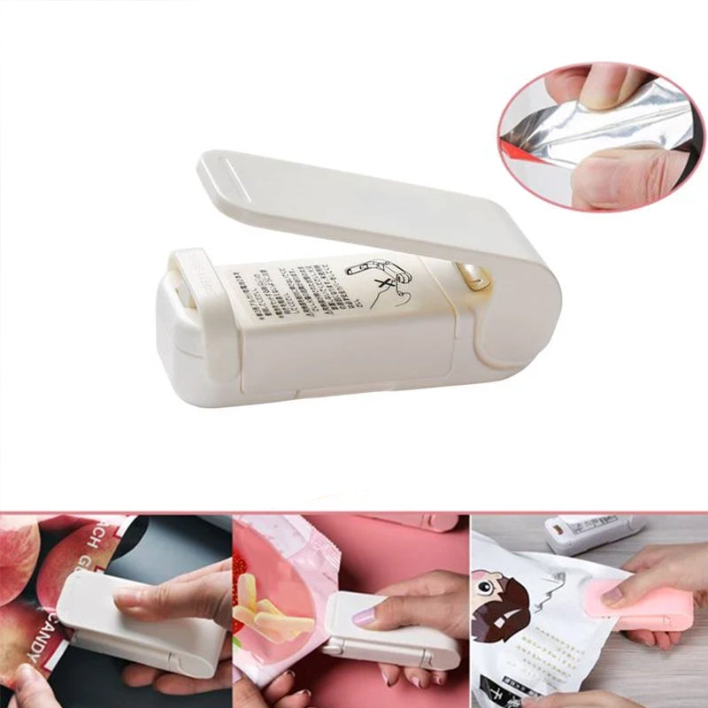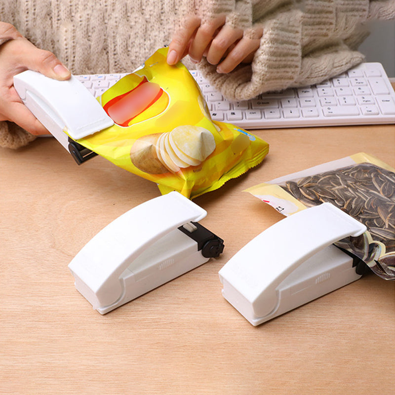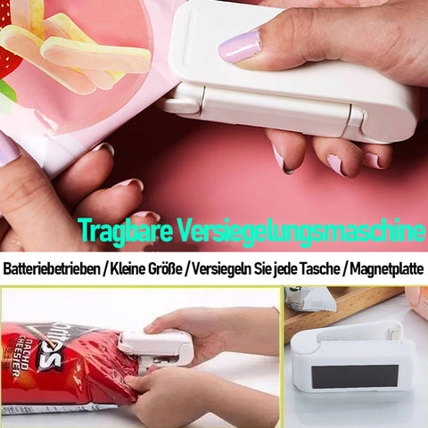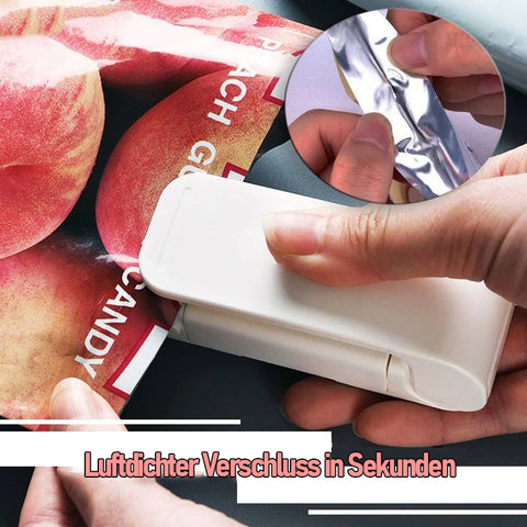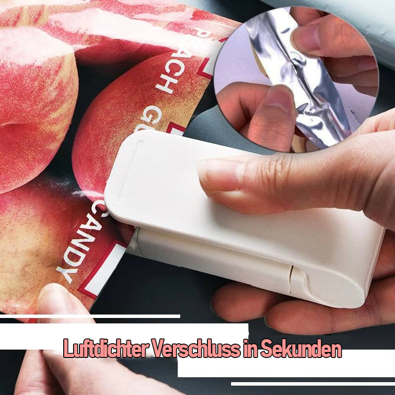 Diese tragbare Mini-Heißsiegelmaschine hilft dabei, alle Esswaren (Lebensmittel, Chips, Süßigkeiten, Snacks, Reste) FRISCH und TROCKEN zu halten.