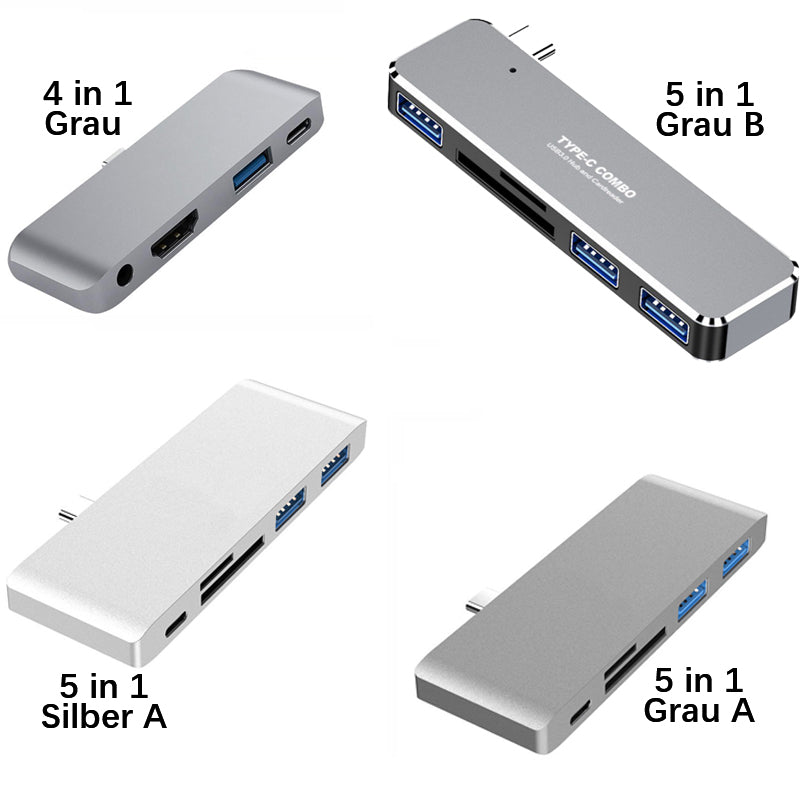 5 in 1 (Grau A) - USB 3.0 * 2 + TF / SD-Kartenleser + PD-Aufladung