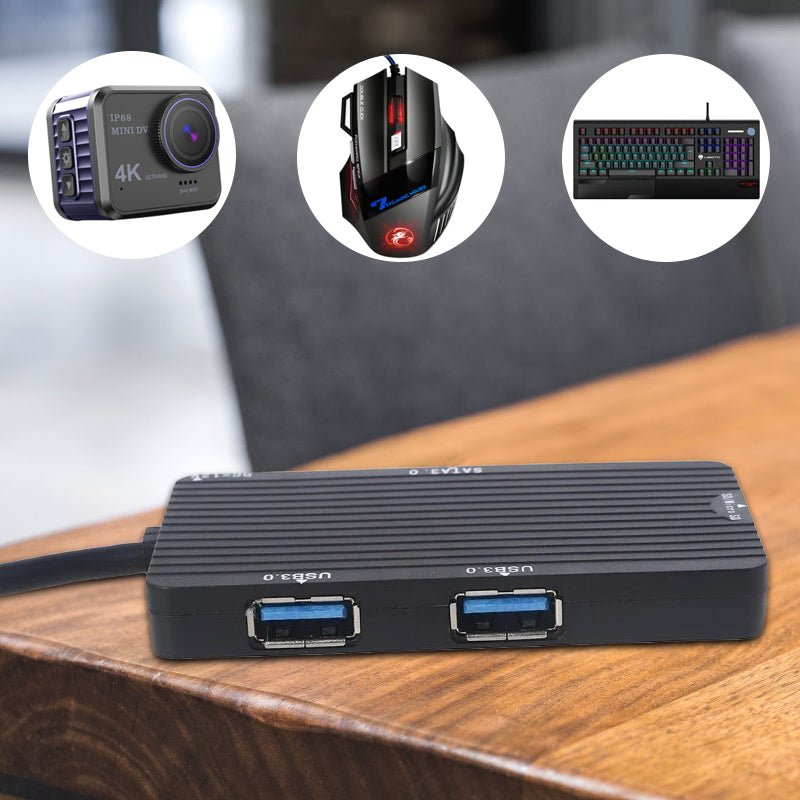 • Liest und kompatibel mit 2,5-Zoll-SATA-HDD/SSD-, SD- und MicroSD-Karten und USB-Flash-Laufwerken