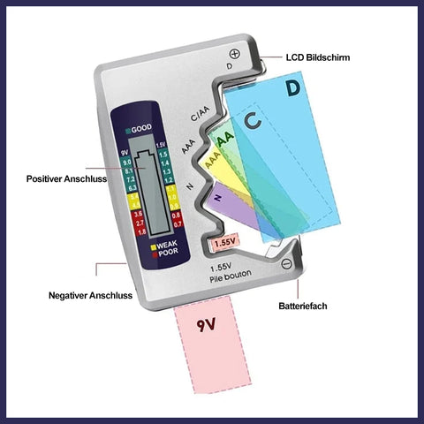 đTesten Sie Batterien in Sekunden, sagt Ihnen, wann es Zeit ist, eine neue zu bekommen.