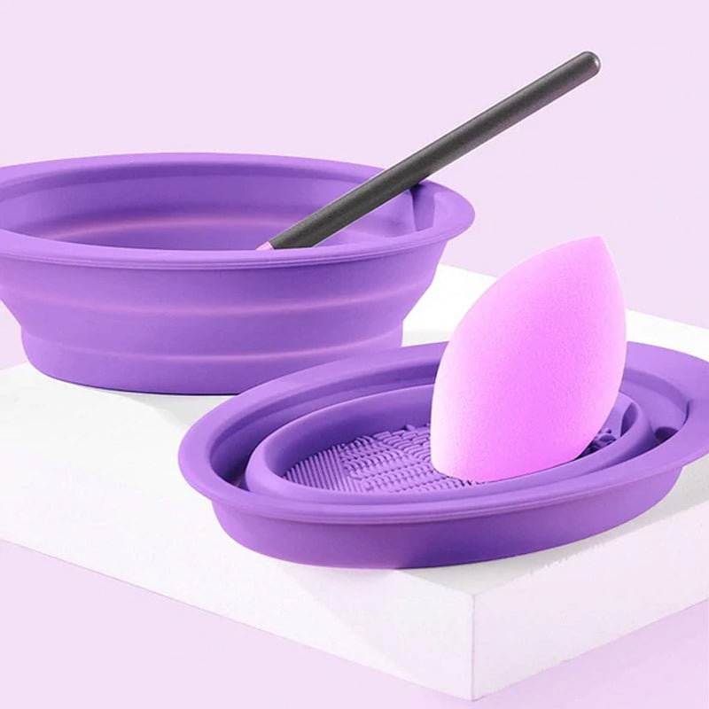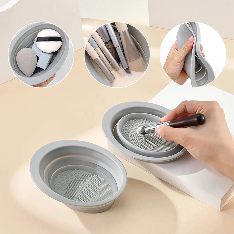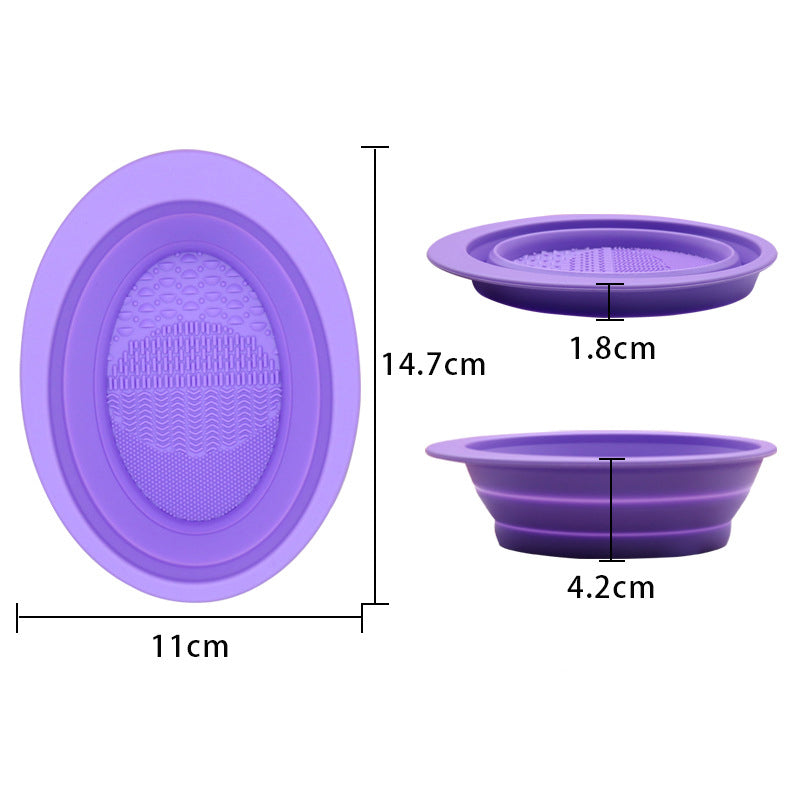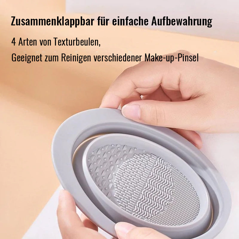 Diese Reinigungsschale für Make-up-Pinsel lässt sich zusammenfalten, ist kompakt und leicht. Sie können es zum einfachen Tragen und Aufbewahren in eine Handtasche oder einen Rucksack stecken. Geeignet für unterwegs oder zu Hause.
