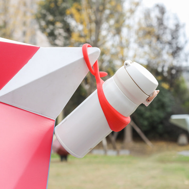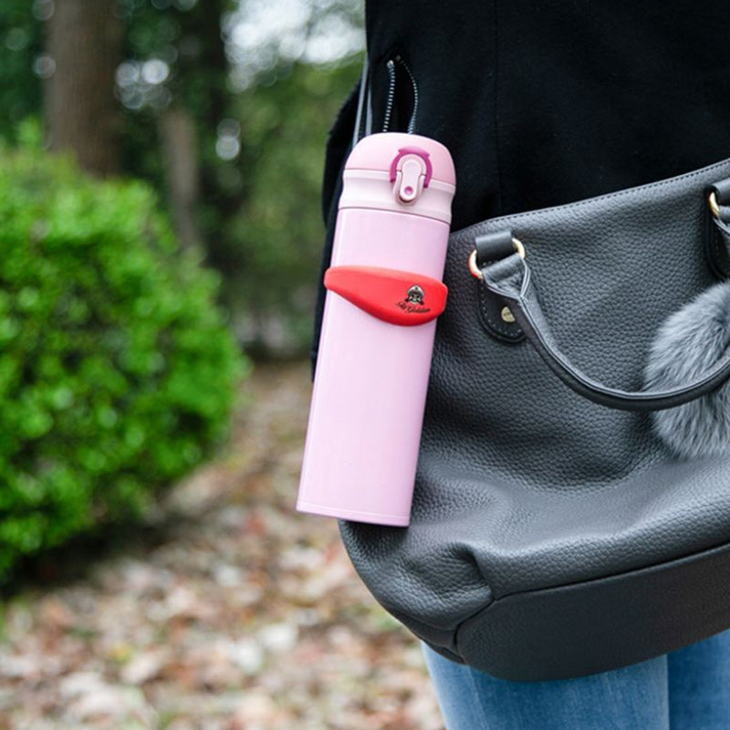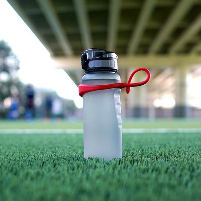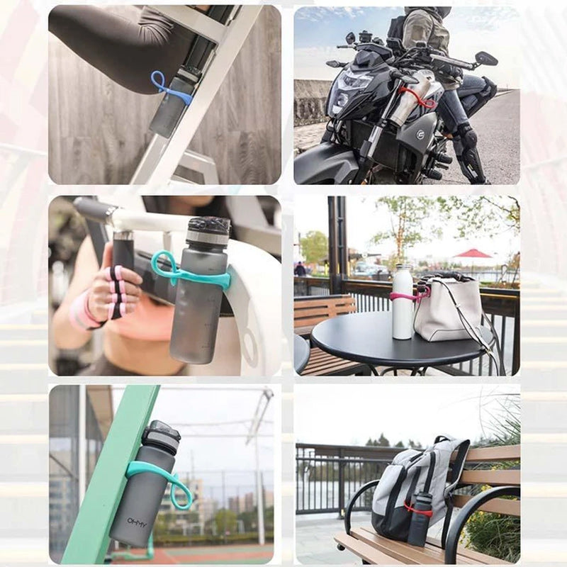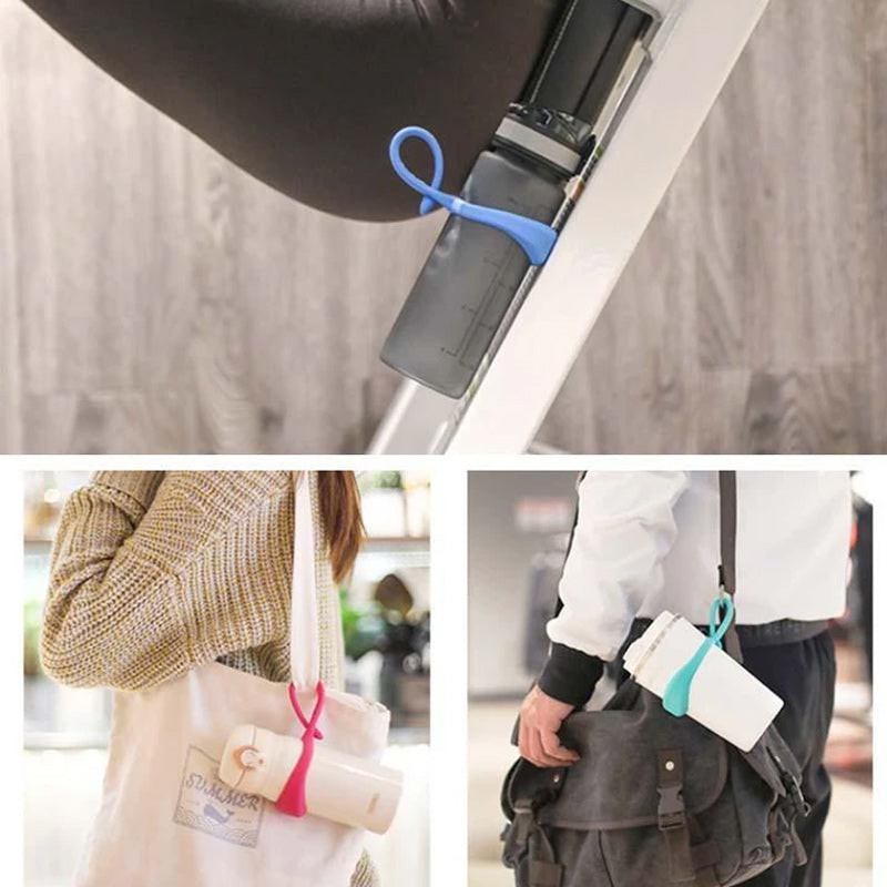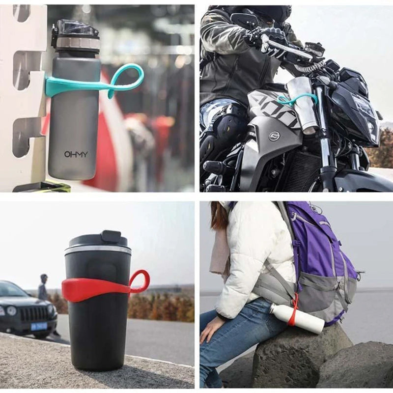 Ein flexibler Silikonring kann Ihre Flasche an Ihrer Tasche befestigen