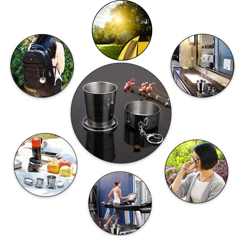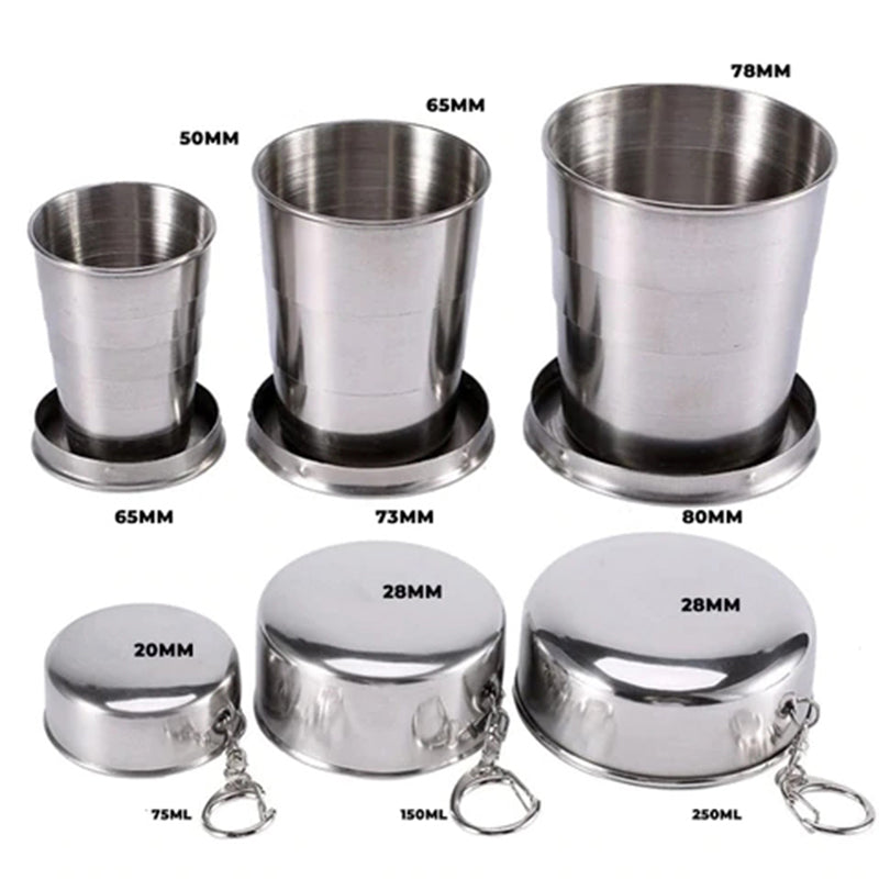 • 🚴‍♂️Enthält 3 Größen: Dieser tragbare faltbare Outdoor-Becher aus Edelstahl enthält einen Schlüsselbund. Sie können zwischen drei verschiedenen Fassungsvermögen wählen: 75 ml, 150 ml und 250 ml.