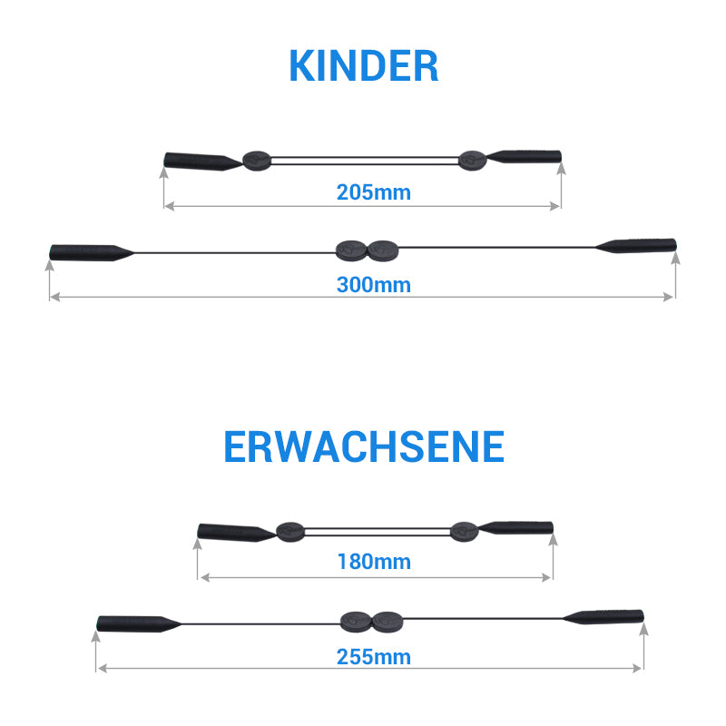 Perfekt für den täglichen Gebrauch oder Outdoor-Sportarten wie Angeln, Radfahren, Skifahren, Wandern, Klettern usw. Eine Einheitsgröße macht dieses Brillenzubehör perfekt für Kinder, Männer und Frauen.