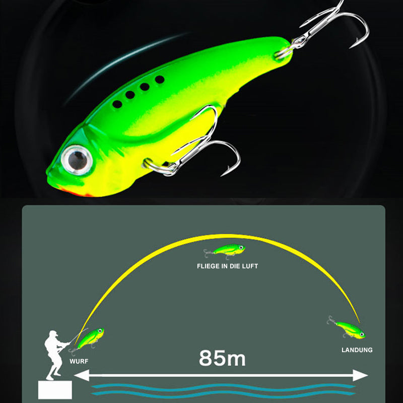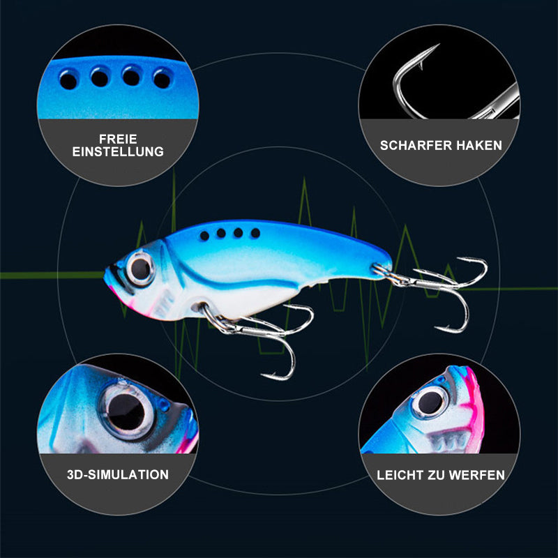 METAILLISCHES MATERIAL: Der Köder besteht aus einer Metalllegierung, die nicht leicht zu rosten ist. Korrosionsbeständig, alterungsbeständig, glatt und beschädigt die Angelschnur nicht.