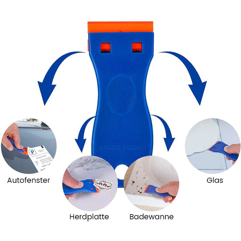 MINIMIEREN POTENZIALE KRATZER, Der sichere Rasierklingenschaber aus Kunststoff ist ein ideales Werkzeug zum Entfernen von Aufklebern.