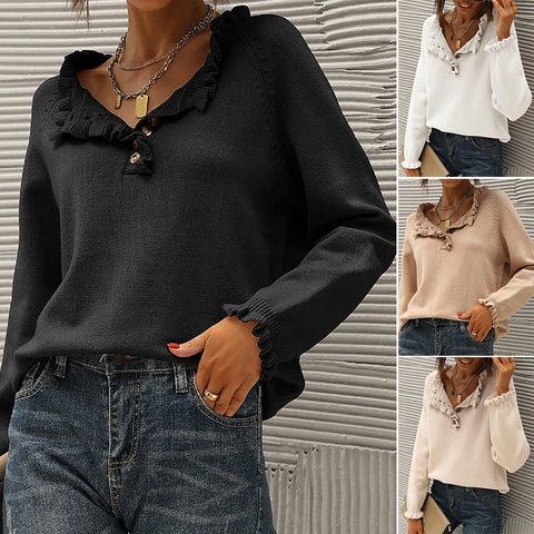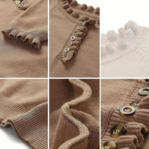 Paket: Damen Lässiger langärmliger Strickpullover mit Rüschen und Knopf * 1