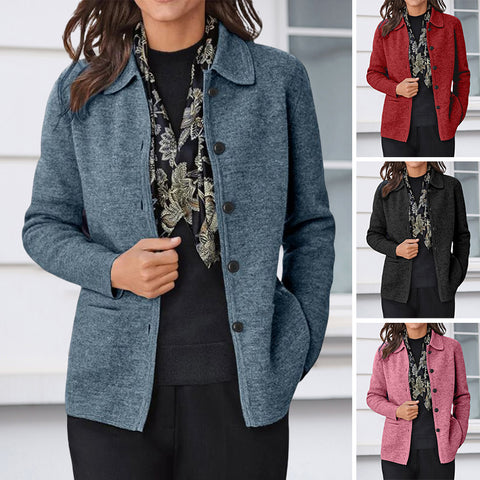 - Stil: Einfarbige Fleecejacke für Damen mit Rever