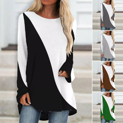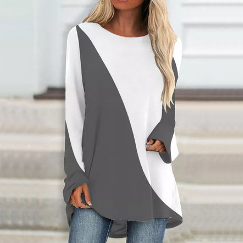 Eigenschaften: Dieses Damen-T-Shirt ist ein langärmeliges, rundhalsiges, übergroßes, lässiges T-Shirt. Unser leichtes Damen-T-Shirt wird Sie in diesem Herbst und Winter charmanter machen.