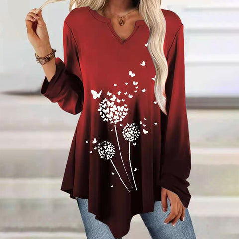 【Eigenschaften】 Damen-Rüschen-Langarm-Top mit Rundhalsausschnitt, um Ihren herausragenden Ausschnitt zur Geltung zu bringen. Stilvolles Design mit Schmetterlingsdruck, elegant und auffällig, bringt Ihrer Familie oder Freunden oder sogar Nachbarn mehr Komplimente.