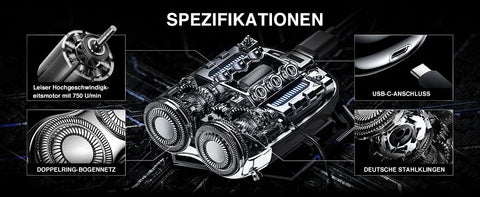 Die Motorgeschwindigkeit beträgt bis zu 7500 U/min, was doppelt so hoch ist wie bei herkömmlichen Elektrorasierern, und die Rasur ist präzise und sicher. Selbst bei geringer Leistung kann die Motorgeschwindigkeit stabilisiert werden, wodurch effektiv verhindert wird, dass der Bart im Rasierer stecken bleibt, und eine schmerzfreie Rasur ermöglicht wird.